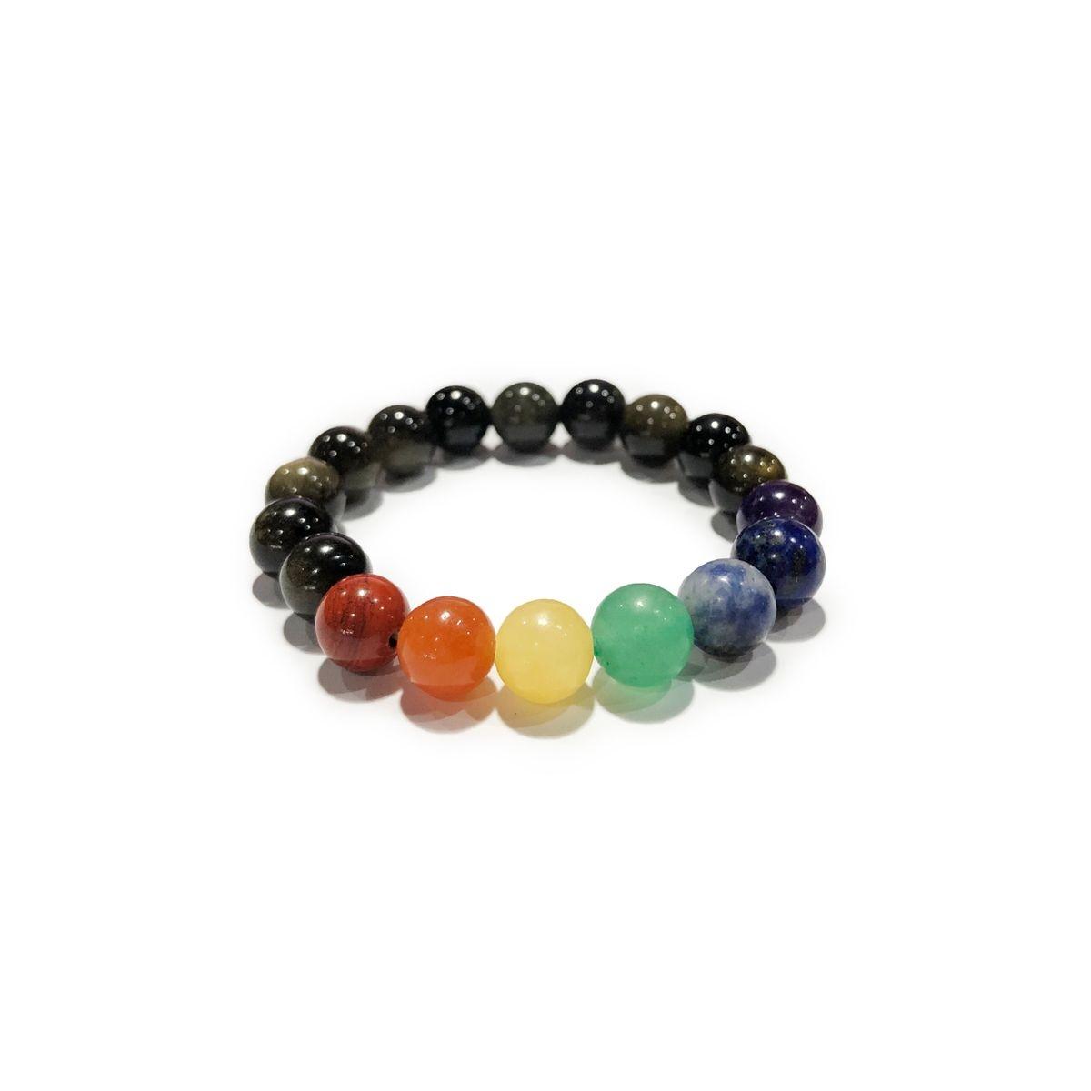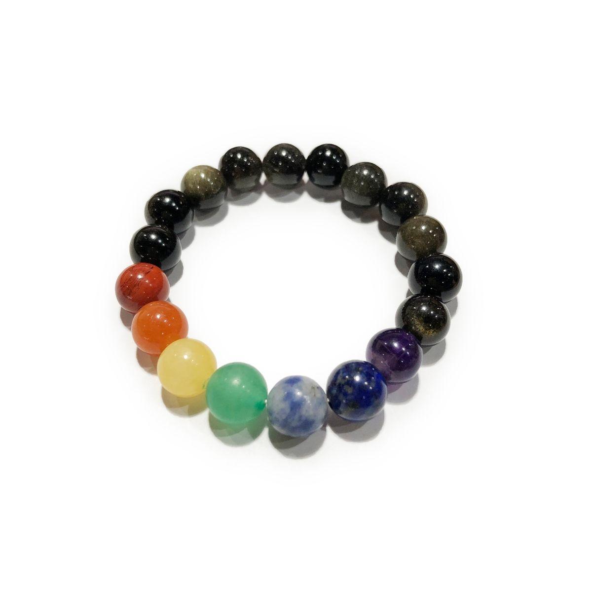 名稱 : 天然7脈輪配金曜石手鍊(SLBL-7C-OSD-GD-0812)
