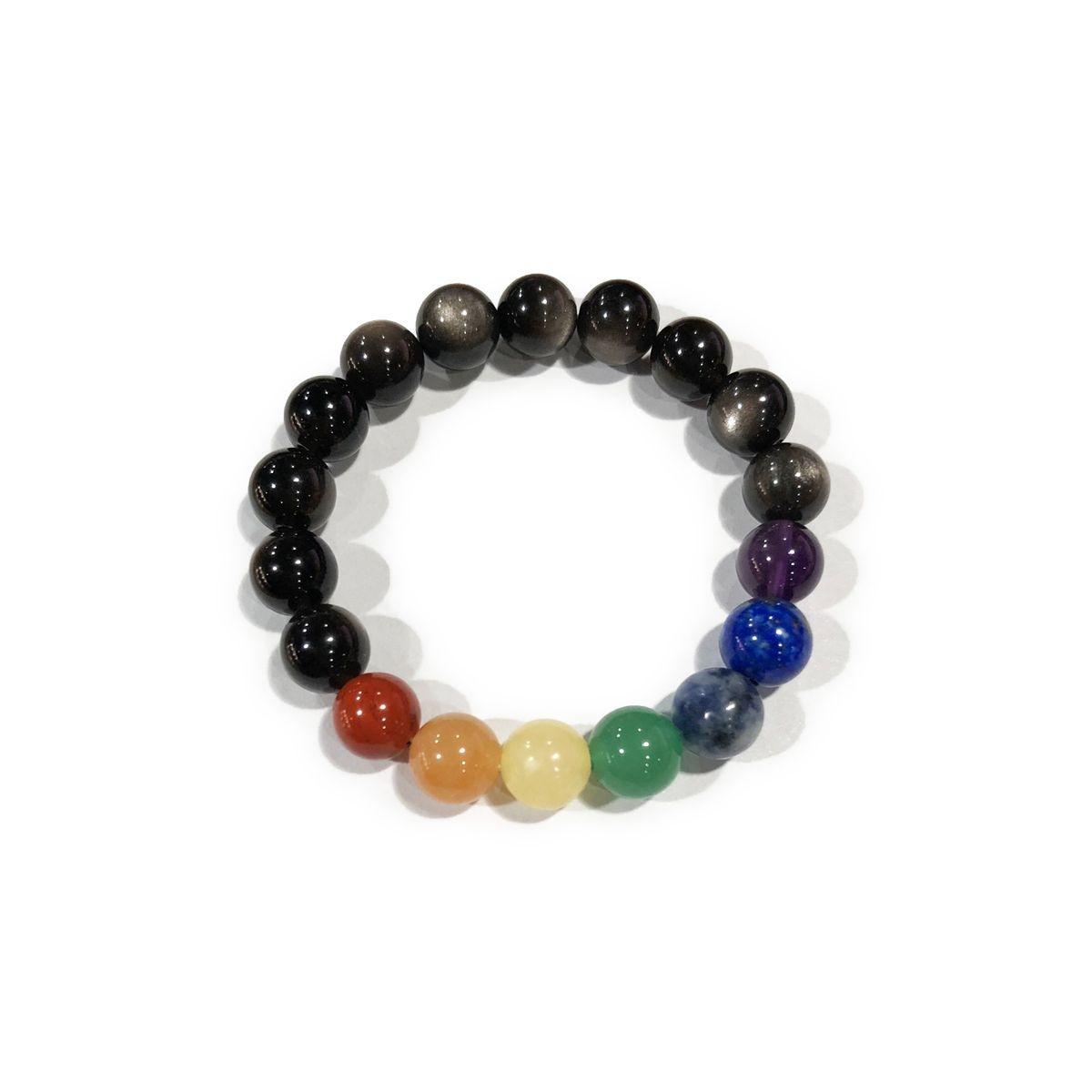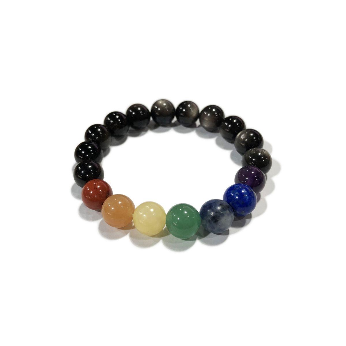 名稱 : 天然7脈輪配銀曜石手鍊(SLBL-7C-OSD-SL-0812)