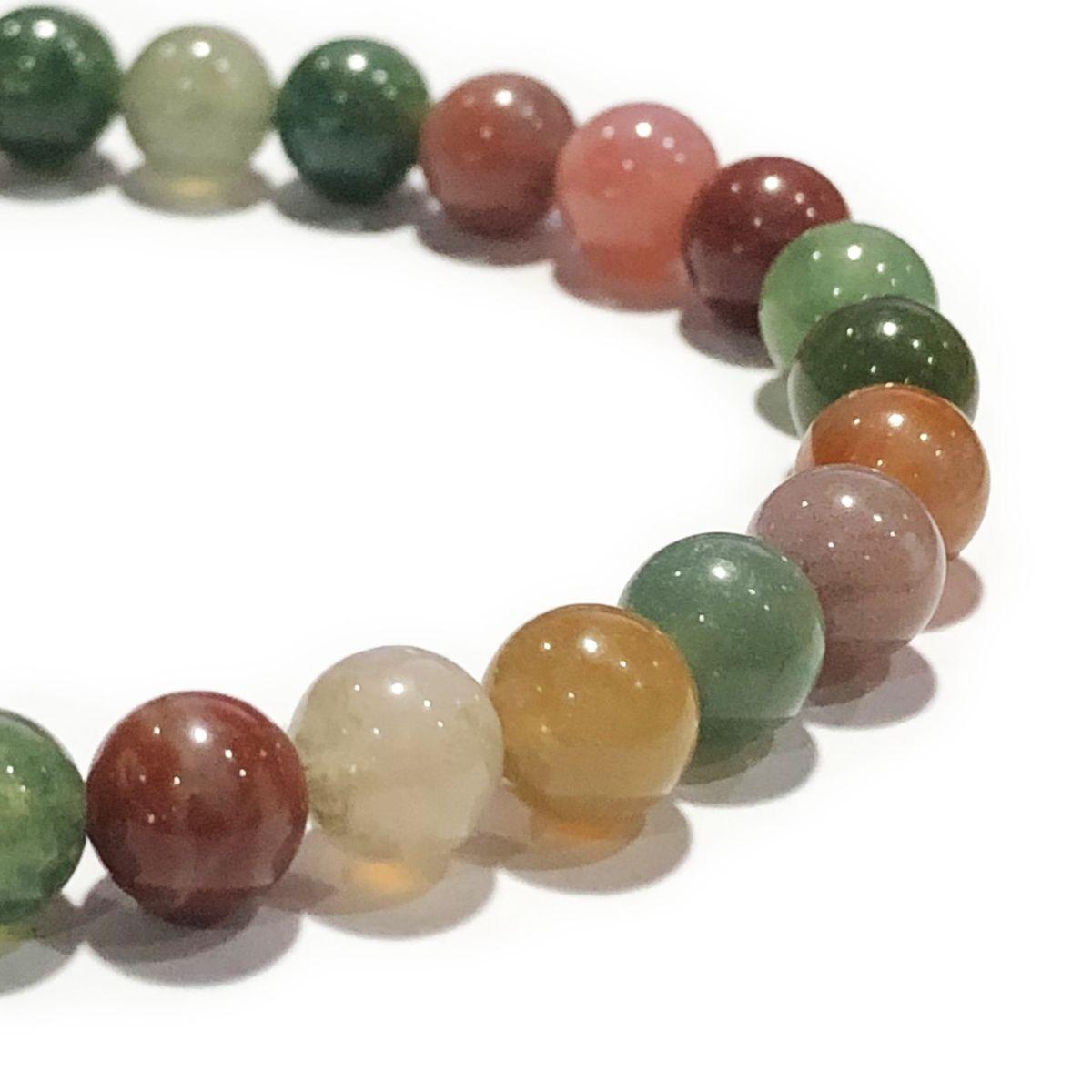 印度瑪瑙是一種顏色十分豐富多樣的瑪瑙品種,也是叫印度七彩瑪瑙。在同一塊印度瑪瑙上,多種顏色並存,紅、灰、藍、綠、紫、黑、白、黃、粉、橙等等都可能出現,其獨特的顏色承載著印度的異國風情,自然稱謂『七彩』之名。