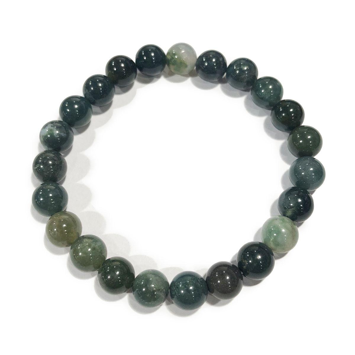 苔蘚瑪瑙/水草瑪瑙是一種介乎白色和透明的瑪瑙在形成過程中混入了呈綠色的鐵和錳,形成一種像包含植物的外觀,並是一種象徵著重生的水晶。