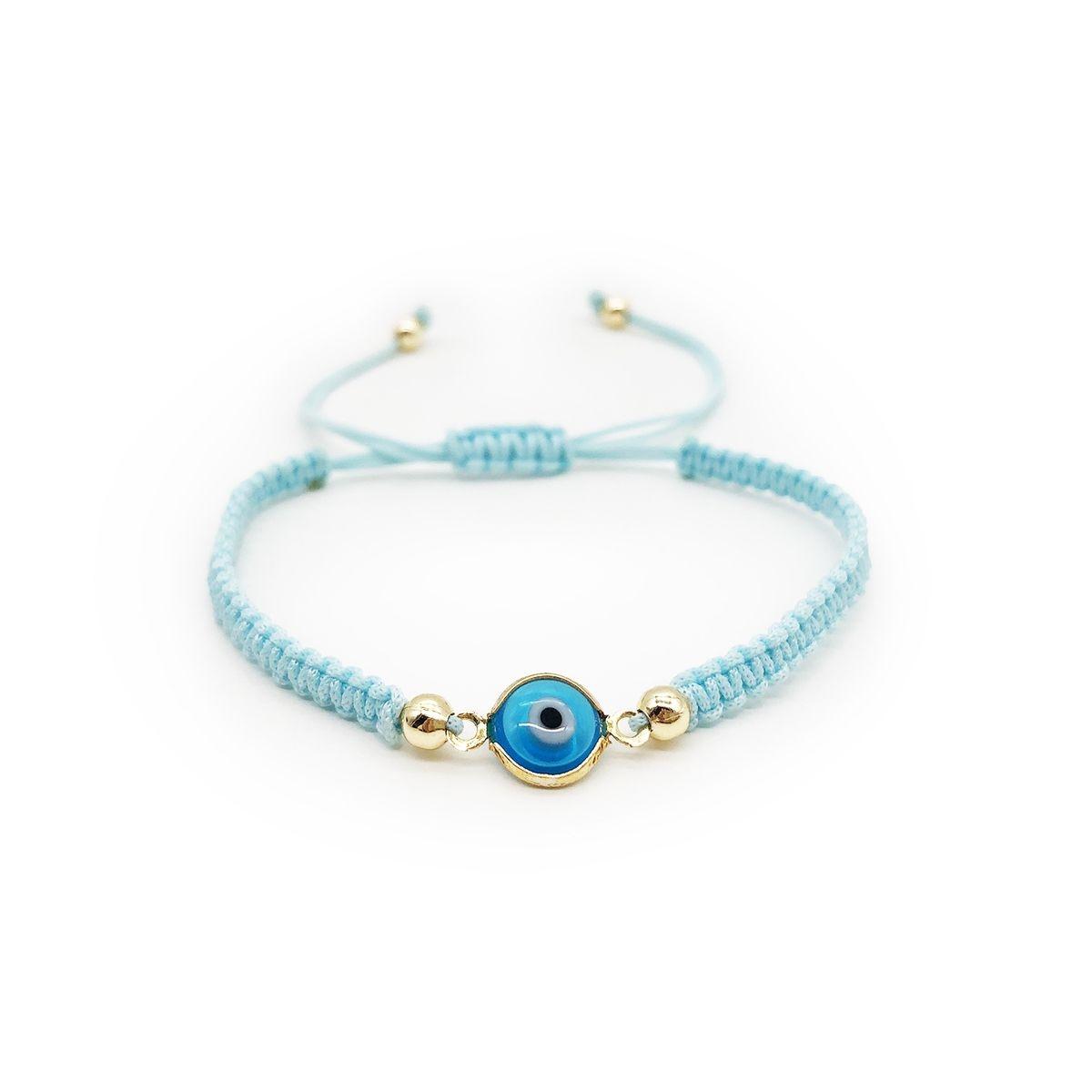 名稱 : 淺藍色玻璃惡魔之眼編織手繩(SLBL-EYEG-LB)