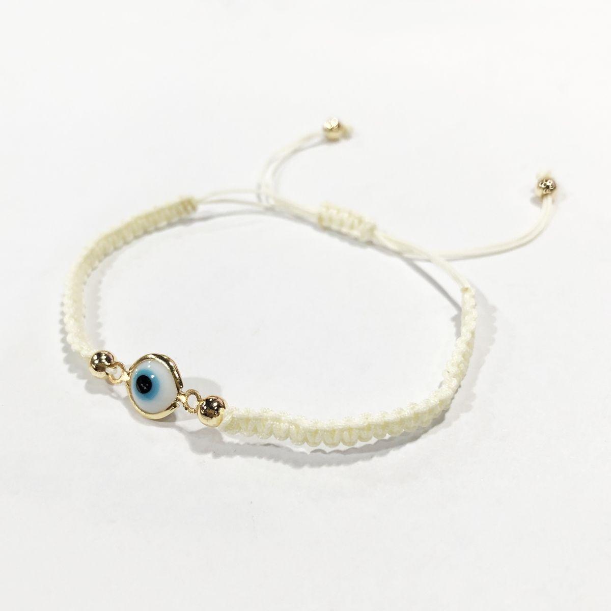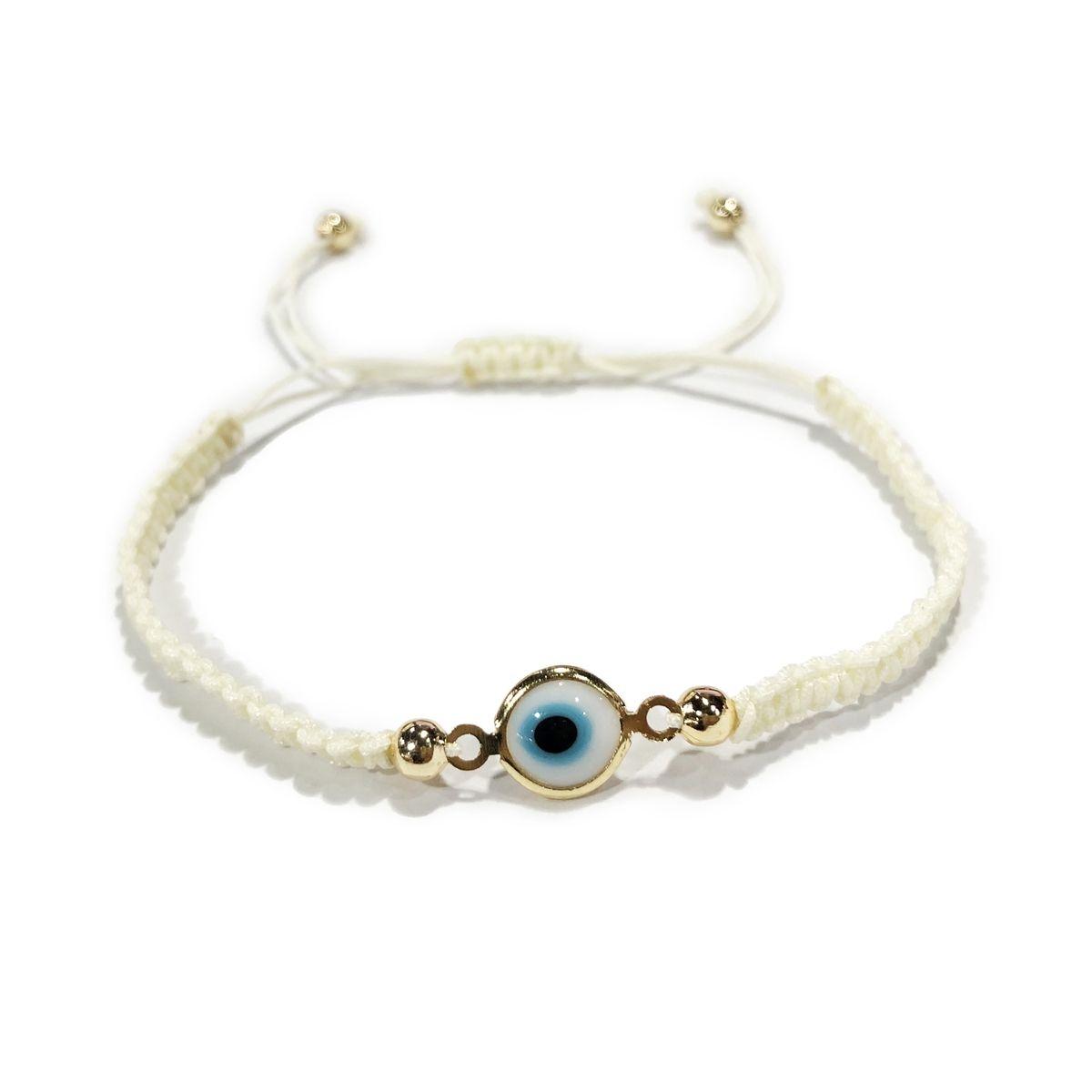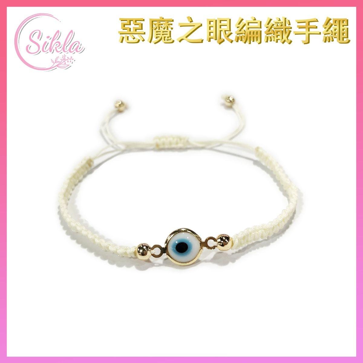 名稱 : 白色玻璃惡魔之眼編織手繩(SLBL-EYEG-WH)