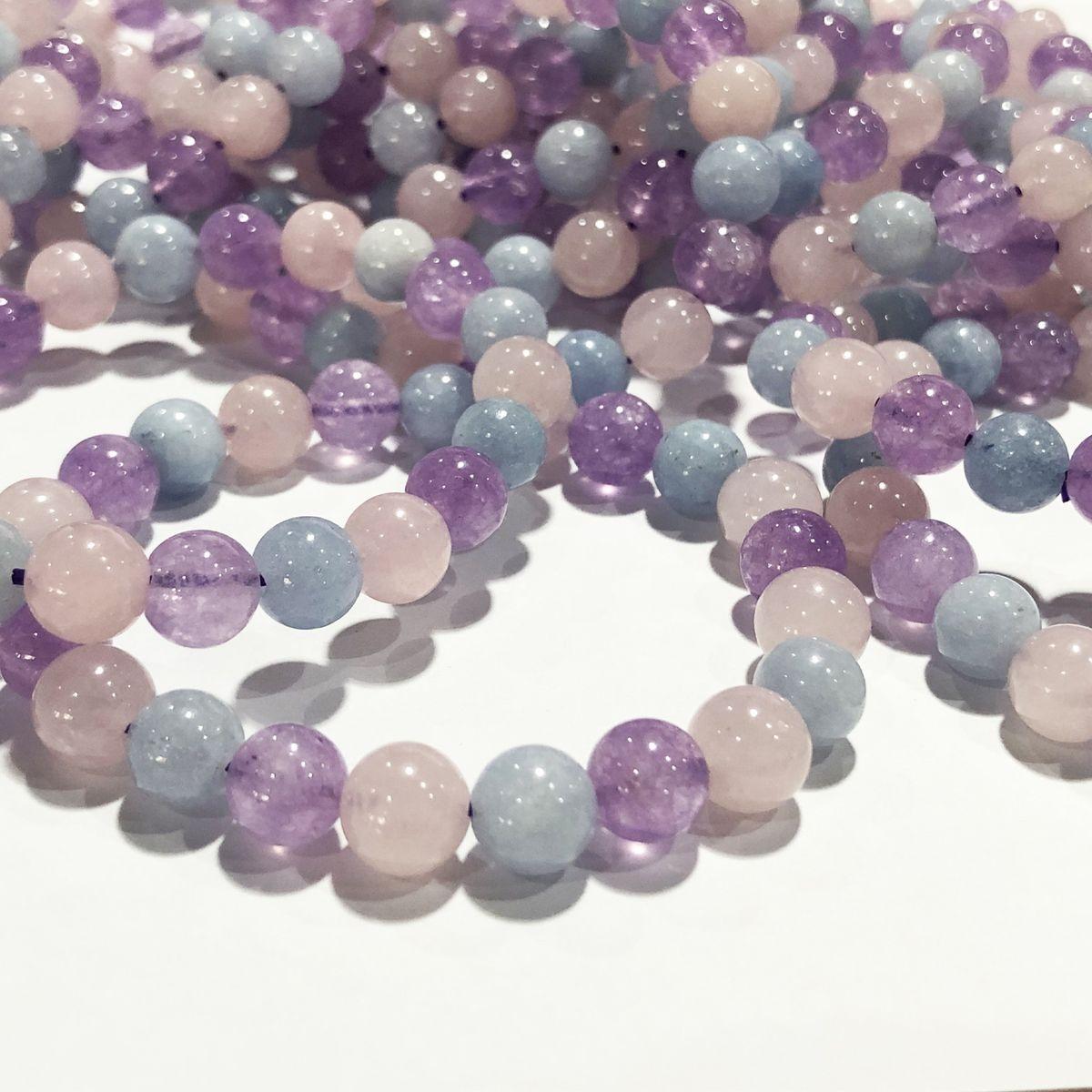 天然三水晶手鏈分別為紫水晶、海藍寶、粉晶珠子組成