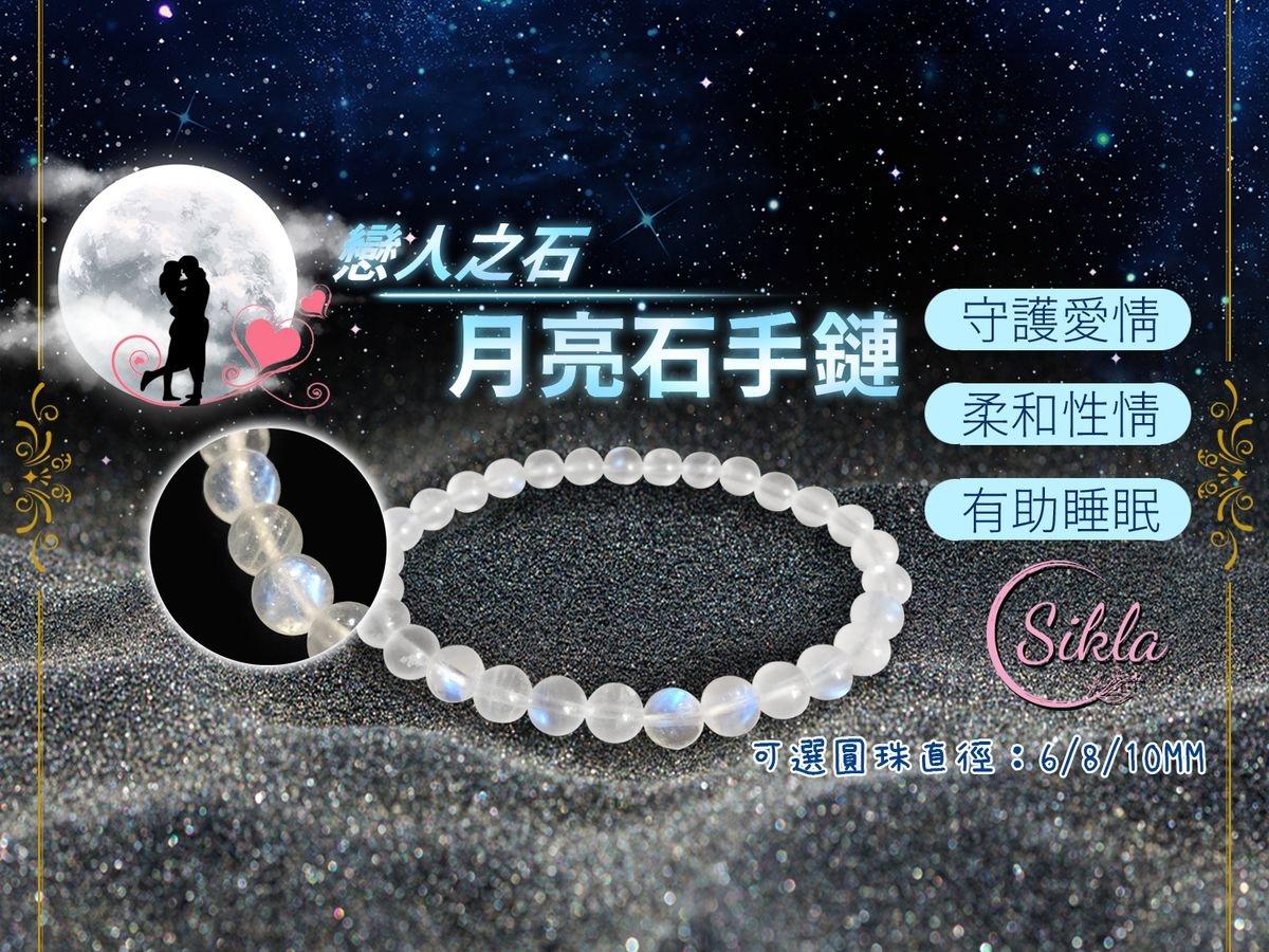 月亮石象徵著健康、富貴和長壽, 又稱戀人之石,具有美顏之效,在半透明中泛著迷人優雅的藍光,彷如月光的亮白幽藍,特別適合女性佩戴,又被譽為招真命天子的寶石,效果比粉水晶招桃花的效果更好。 月亮石一直被認為是月亮神賜給人類的禮物,象徵一輪明月,彷彿帶著神秘而不可抗拒的力量。 傳說中,月圓的時候,佩戴月亮石能遇到好的情人;因此,月光石被稱為「情人石」,是友誼和愛情的象徵。