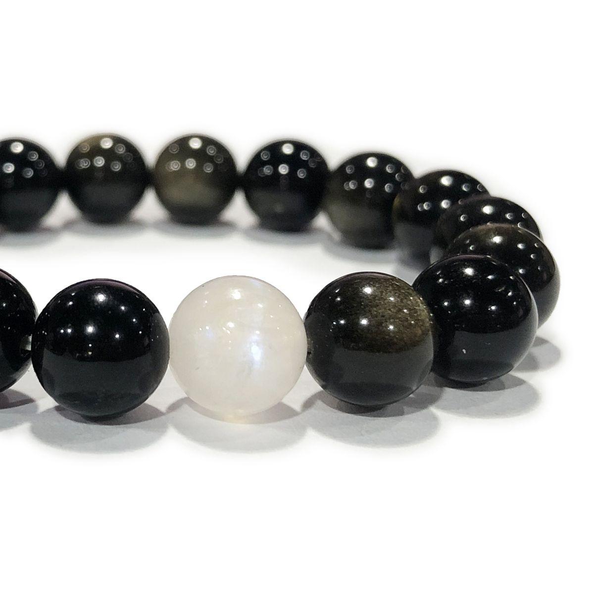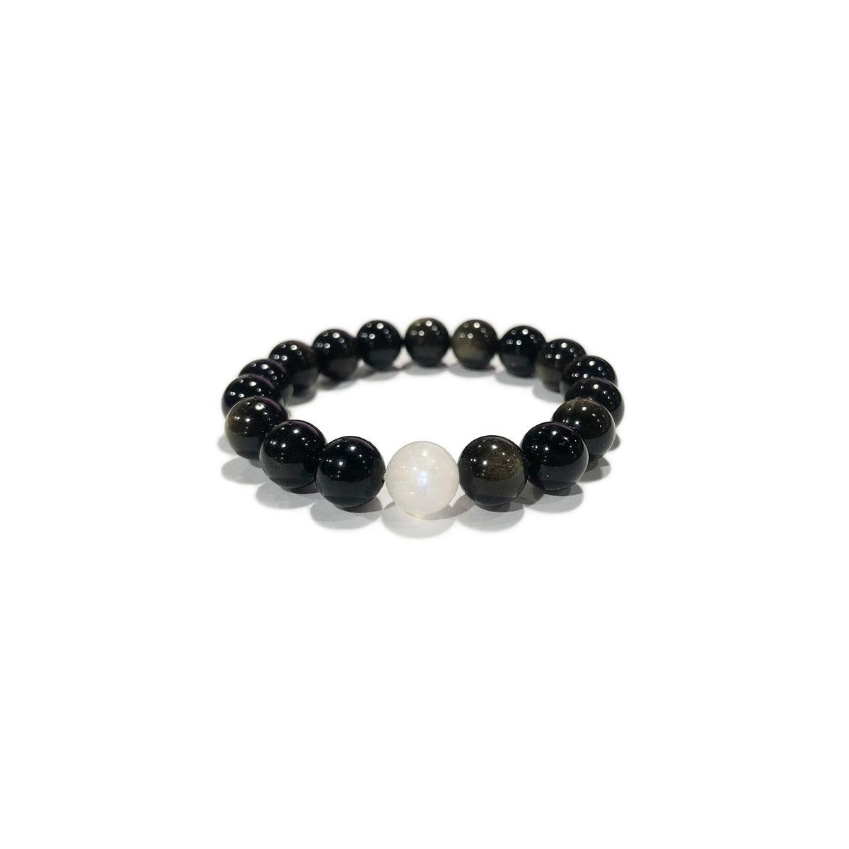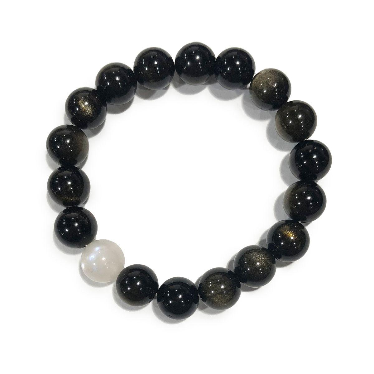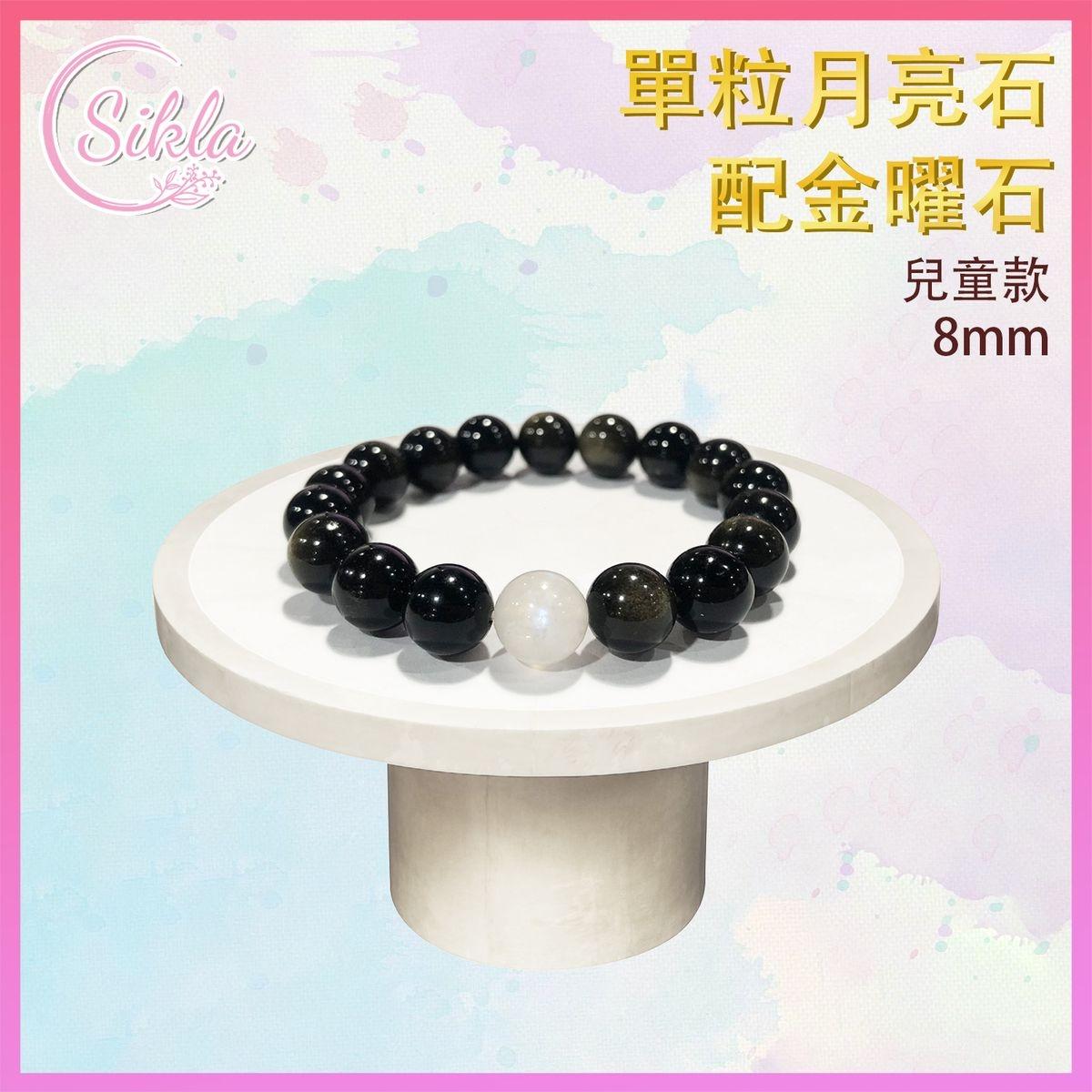 名稱 : 100%天然單粒月亮石配金曜石兒童手串(SLBL-MOON-OSD-GD-0812)
