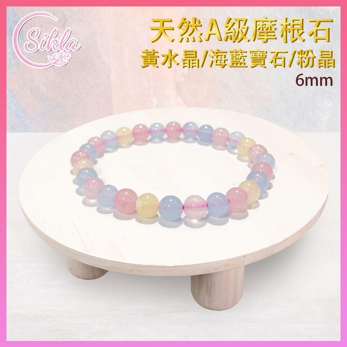 天然三水晶手鏈分別為黃水晶、海藍寶、粉晶珠子組成