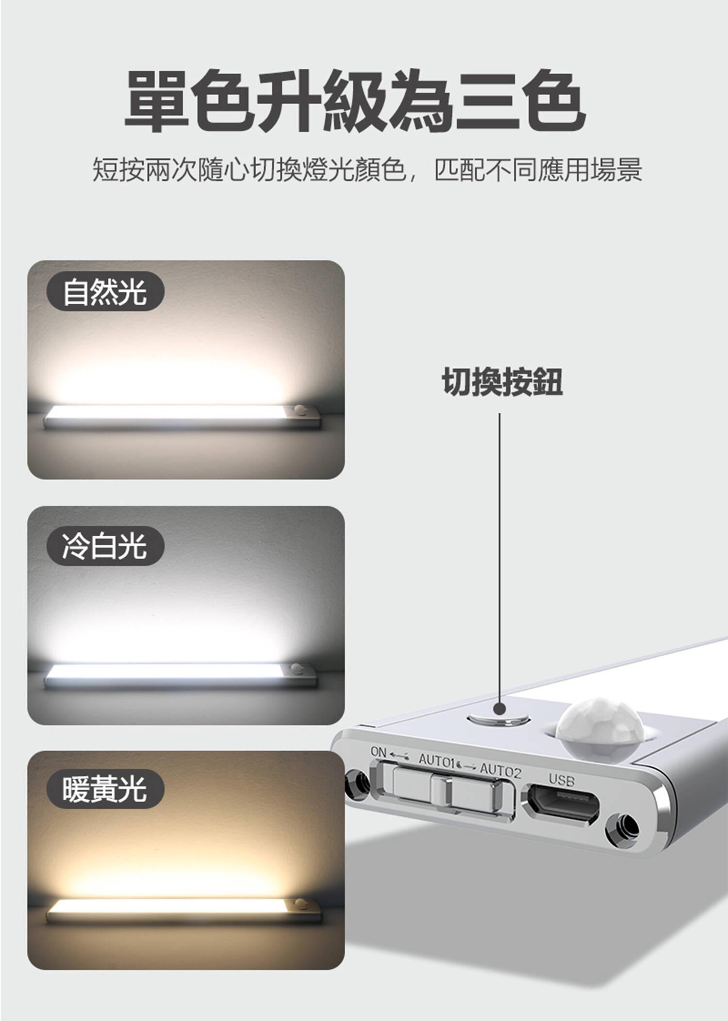 40CM長白光/自然光/暖光自由選可調光智能紅外人體移動+光控感應燈條