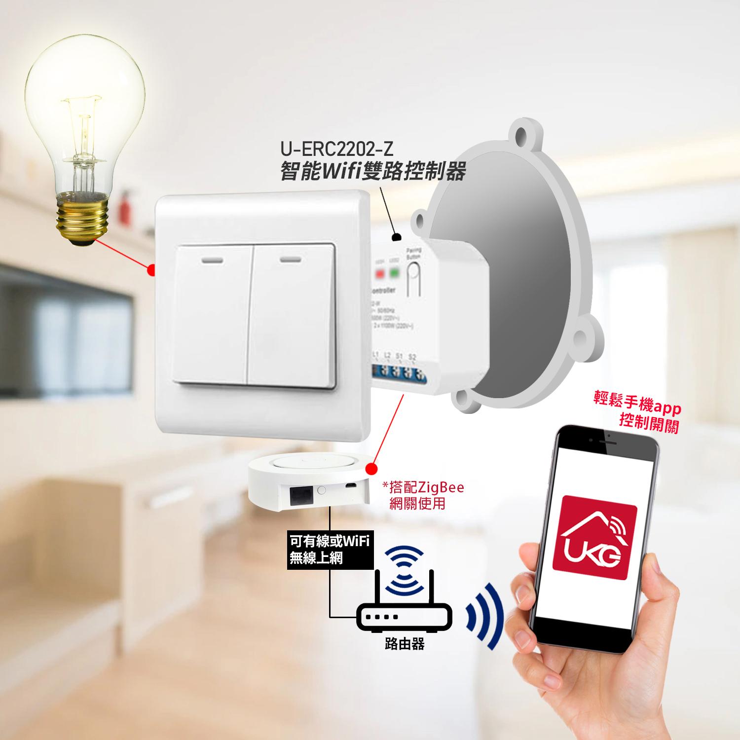 U-ERC202 : 2路RF+WiFi+有線開關/RF+ZigBee+有線開關三合一控制器