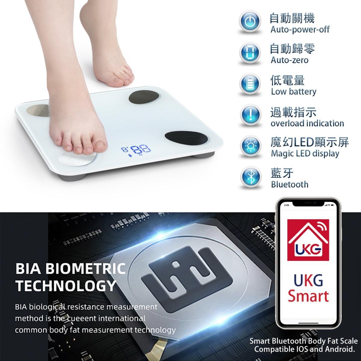 UKG智能體重秤是您的健康助手,可以測量 11 個身體指標並顯示在 APP 上,還可以與 Fitness APP 同步。 UKG智能體重秤支持您和您的家人共享一台體重秤來管理健康指標並改善健康狀況。 讓您和您的家人保持健康。