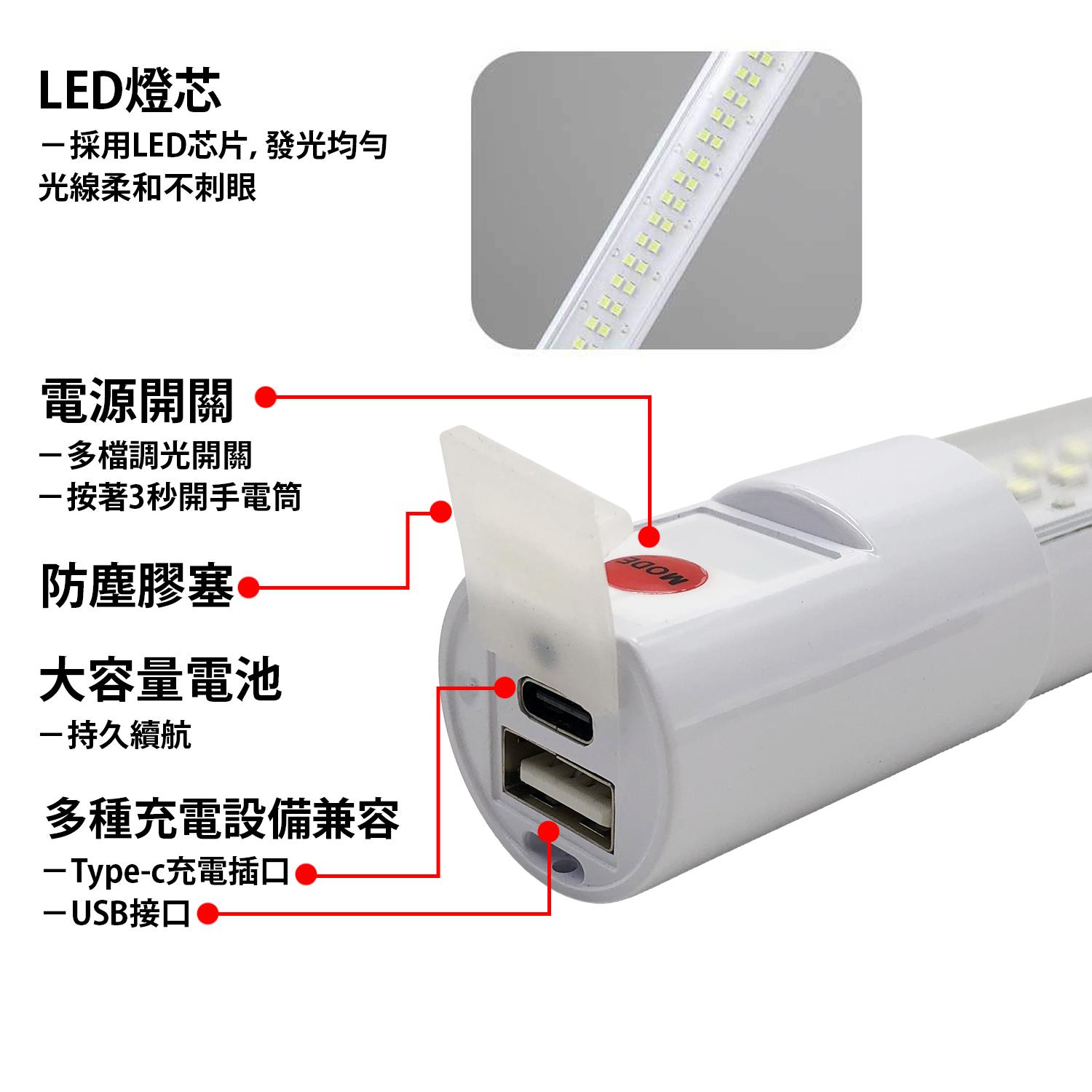 20CM長白光USB Type-C應急行動圓柱狀LED燈管防水防塵多檔調光手電筒外置電源尿袋(ULED-CY20WH)-多功能充電燈筒-可當作手電筒用-多種可充電設備-燈芯片光線柔和-大容量電池耐用-插/接口帶膠防塞四檔調光模式:白光(強光/中光/柔光) + 閃光(紅藍警光)長按3秒:手電筒亮燈功率:20W電壓:DC 5V重量:約135g ±5g尺寸:約20cm長 x 2.8cm直徑