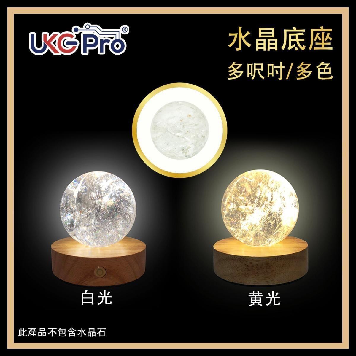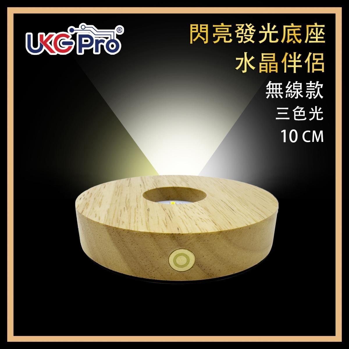 LED燈 無線小夜燈 LED發光水晶底座10CM直徑三色光無線觸控鋰電池USB充電觸摸開關+調節亮度LED實木圓形底座小夜燈 水晶發光木製底座燈 飾物工藝品展示木燈推薦 夜燈推薦 ULL-WOOD-10WL-3C