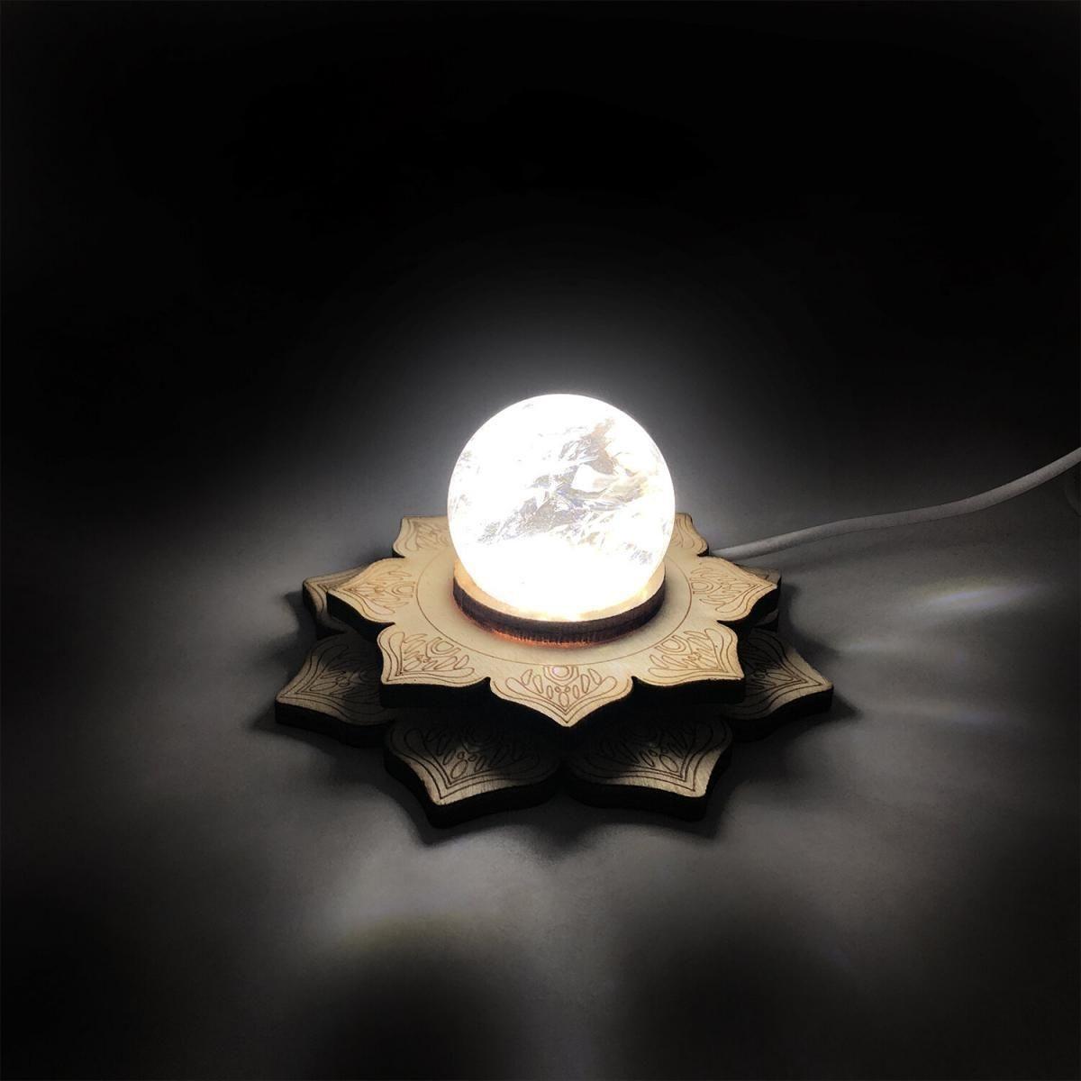 LED燈座 11CM三色光LED實木蓮花形底座小夜燈(USB供電) 調節亮度+控制鍵5V電源水晶發光木製底座燈 水晶展示座 禮物推薦 LED裝飾燈 氣氛燈 ULL-WOOD-LOTUS-DIM-3C