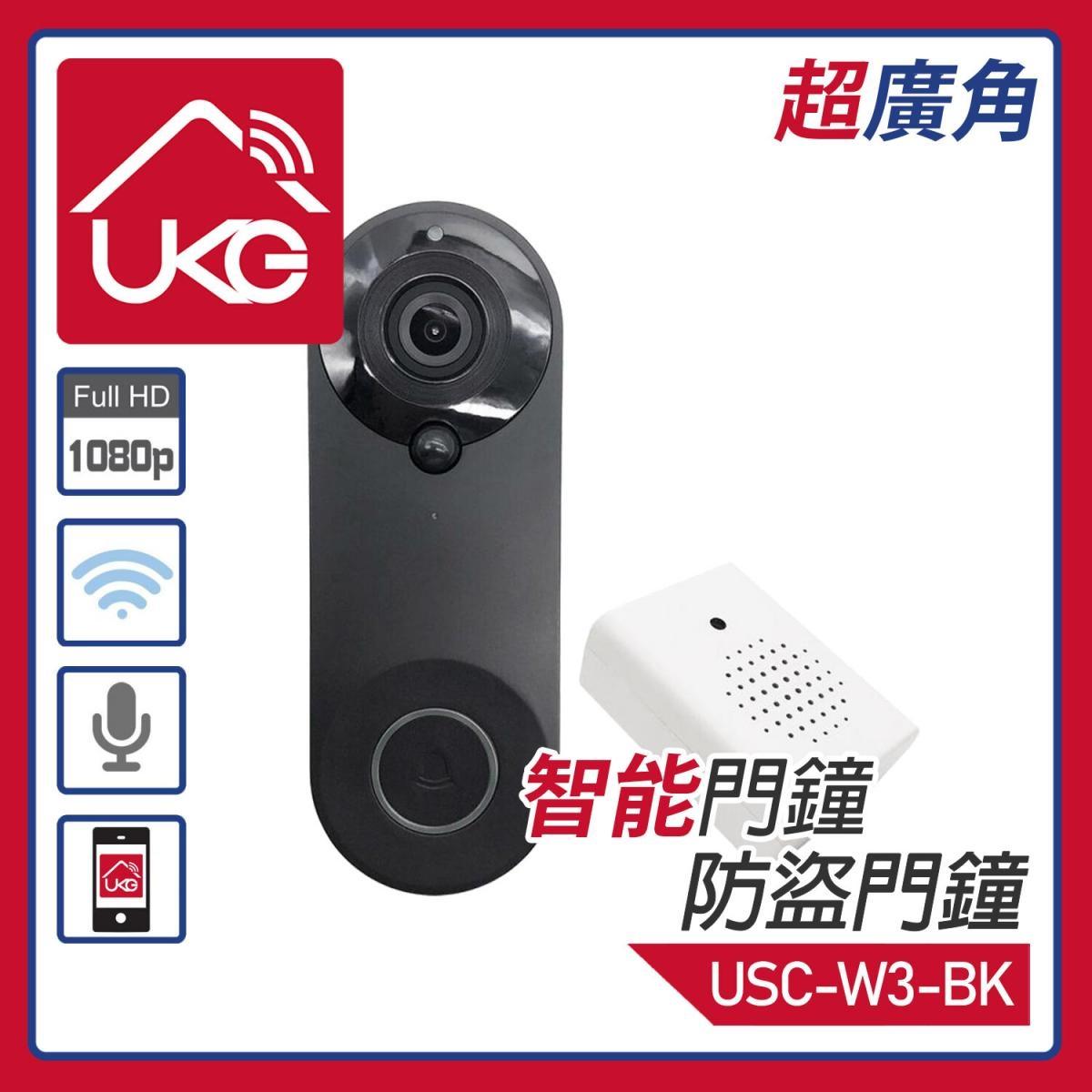 黑色智能超廣角WiFi防盜門鐘1080p附送室內無線USB門鈴套裝(USC-W3-BK)