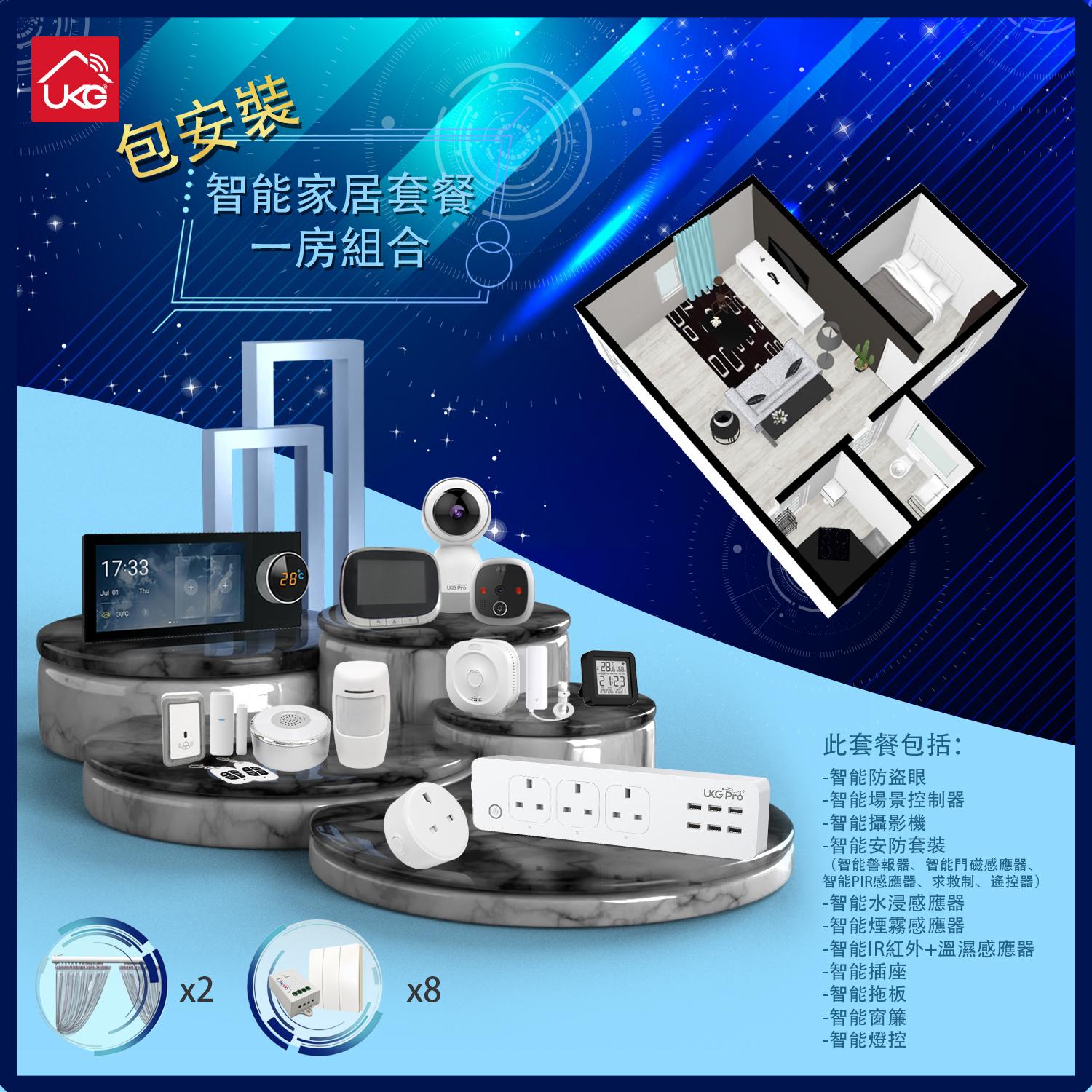 UKG智能家居家居安防套餐﹕一APP掌控、遙距接收警報和監控家中情況,記錄出入門口影像,遙距與訪客雙向視像對話,零距離看護家中寶寶,雙向視像對話,智能感應各種情況及時現場和遙距APP同步響警報,及時處理,從而保護生命財產安全,減低失竊、火災、水浸等意外之風險。