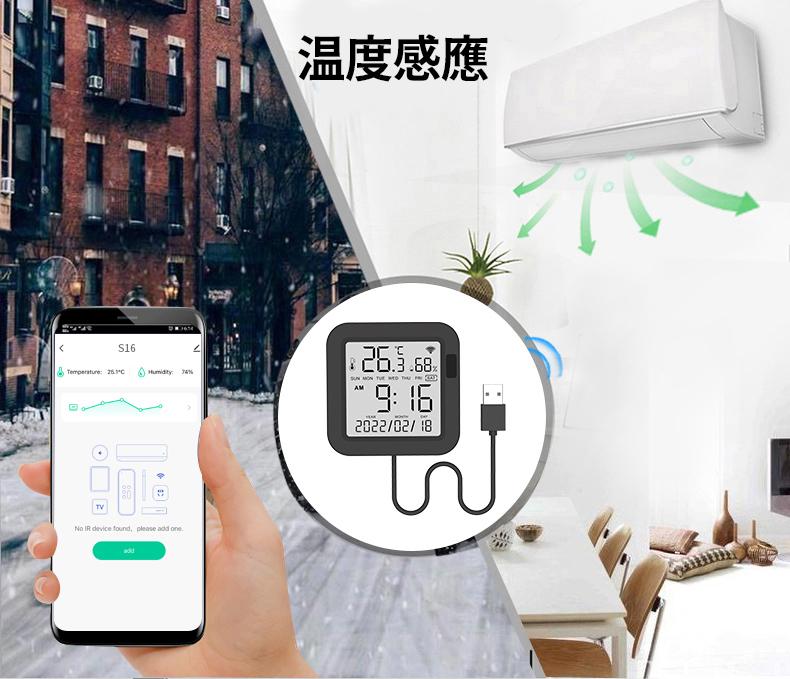 智能WiFi紅外遙控器+溫濕感應器IR+TH 智能萬能遙控器(USW-IRTH-BK-S16)