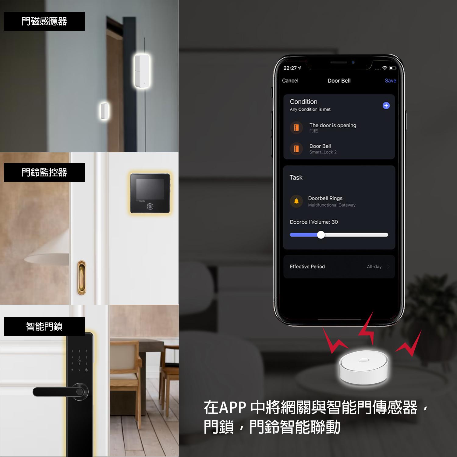 支持場景和自動化: 網關的子設備作為觸發條件,通過APP中的場景和自動化設置與其他智能設備聯動,為所有塗鴉智能真正意義上的全屋聯動的強大智能家用設備。