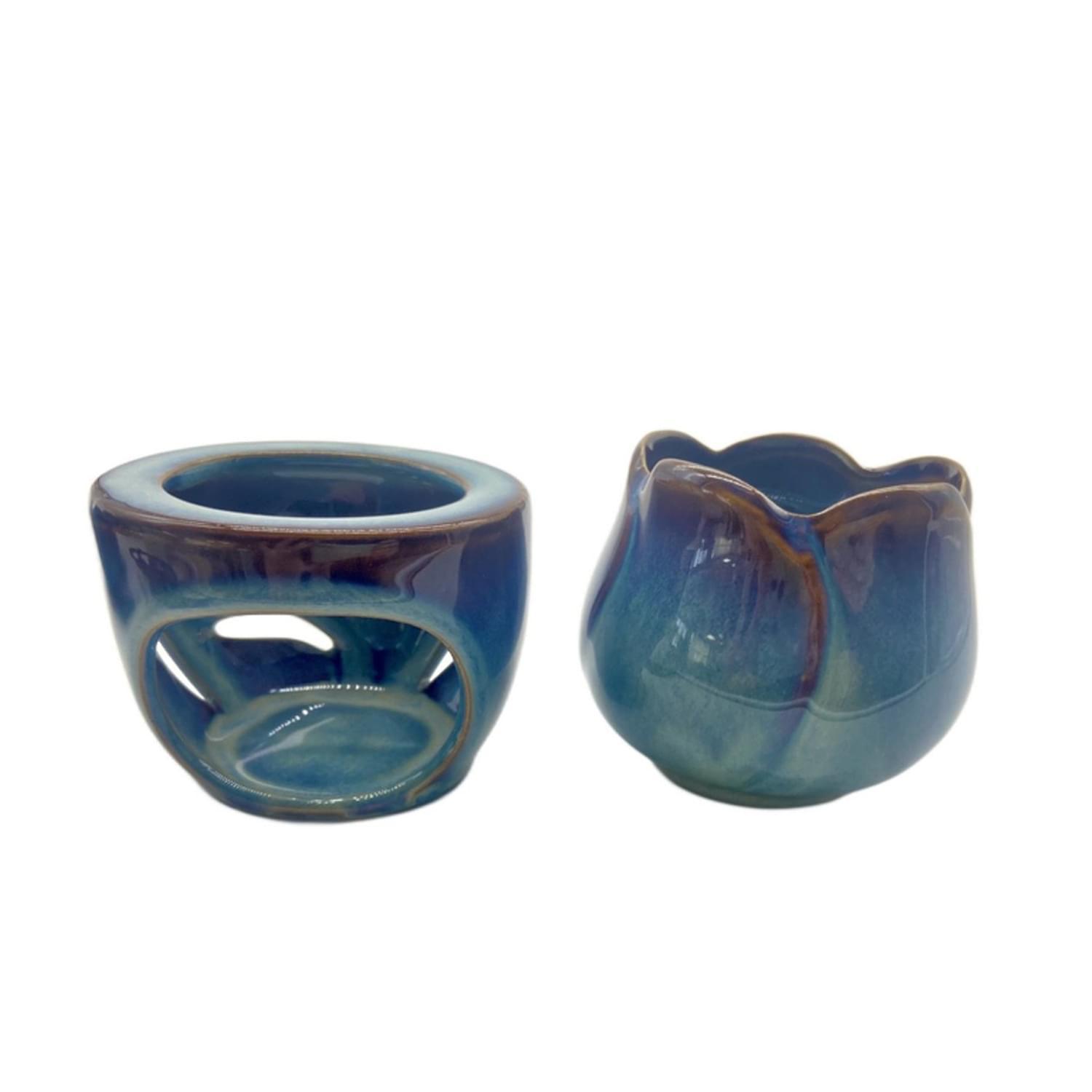 藍色陶瓷座特大容量香薰精油乳香合用家用燭台香爐燃燒香薰 (V-AROM-BURNER-BLUE)