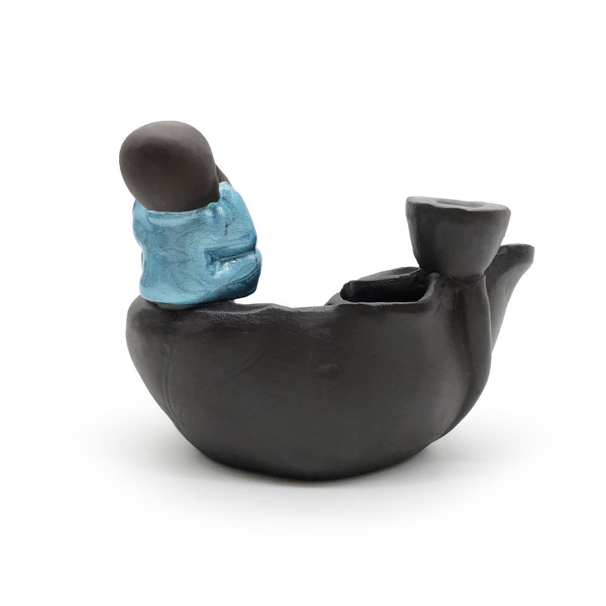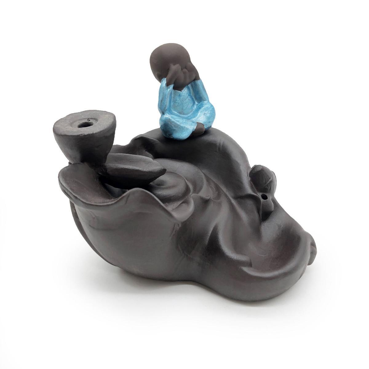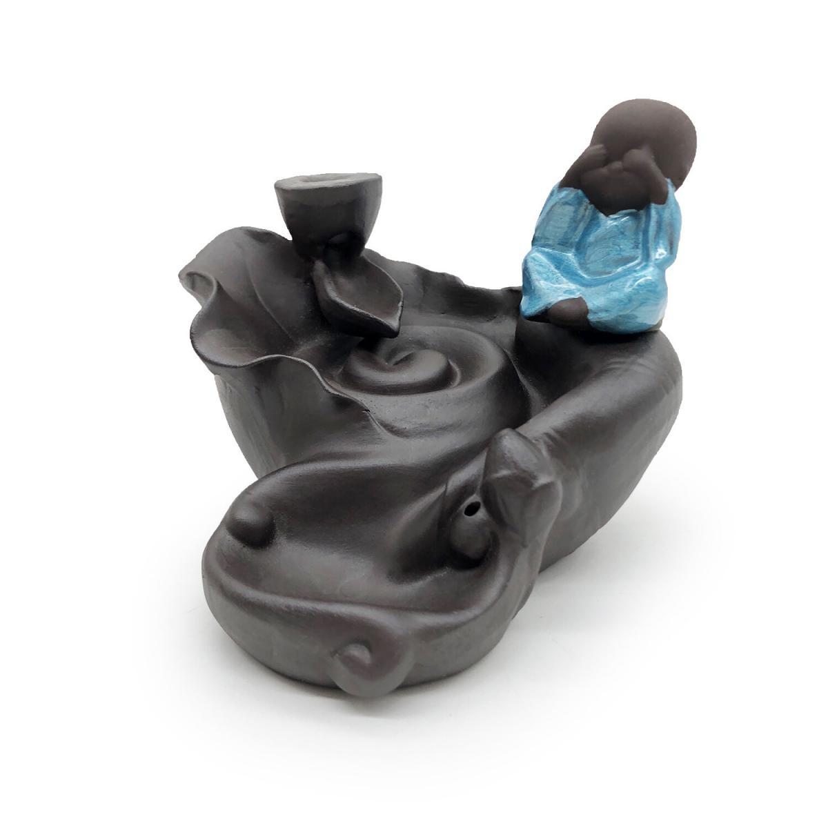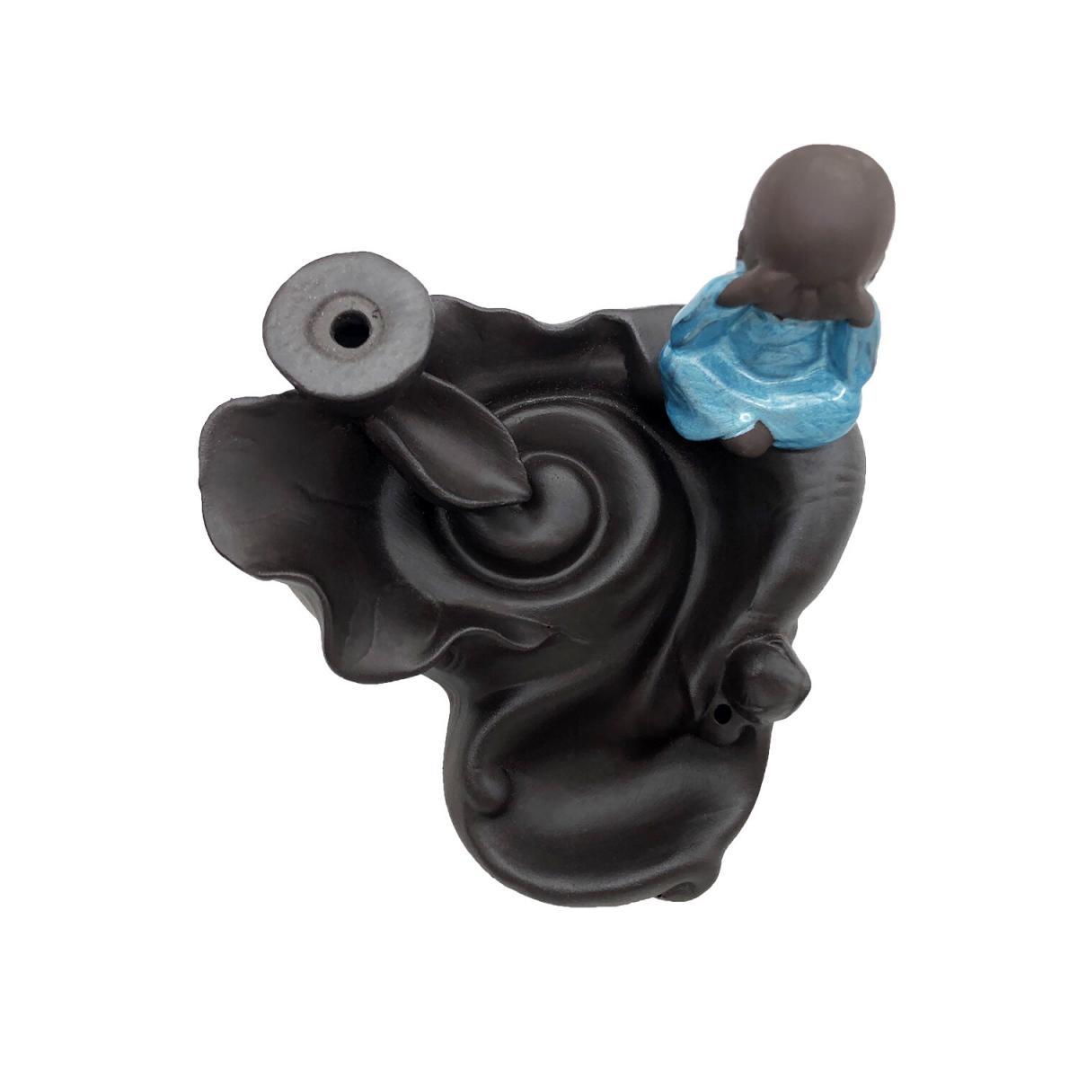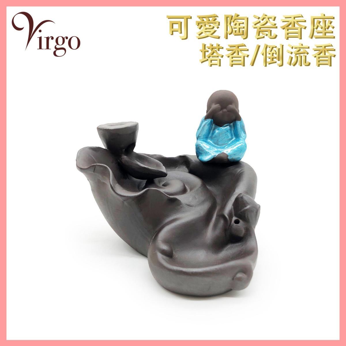 煙霧一般是往上升的,為何倒流香香燃燒之後,產生的煙霧會往下沉呢? 倒流香最重要的是把無數的顆粒物聚集到一起 同時塔狀香外形隔離開外圍上升的熱空氣,不讓熱空氣帶著煙往上升 只要室內沒有風、空氣相對靜止,煙便會下沉 再配合倒流香爐的獨特結構,就能順利產生往下流的煙霧。 捂眼小和尚塔香倒流香兩用香座(V-BFIH-CERAMIC-LOTUS) 材質 : 陶瓷 呎吋 : 爐身高