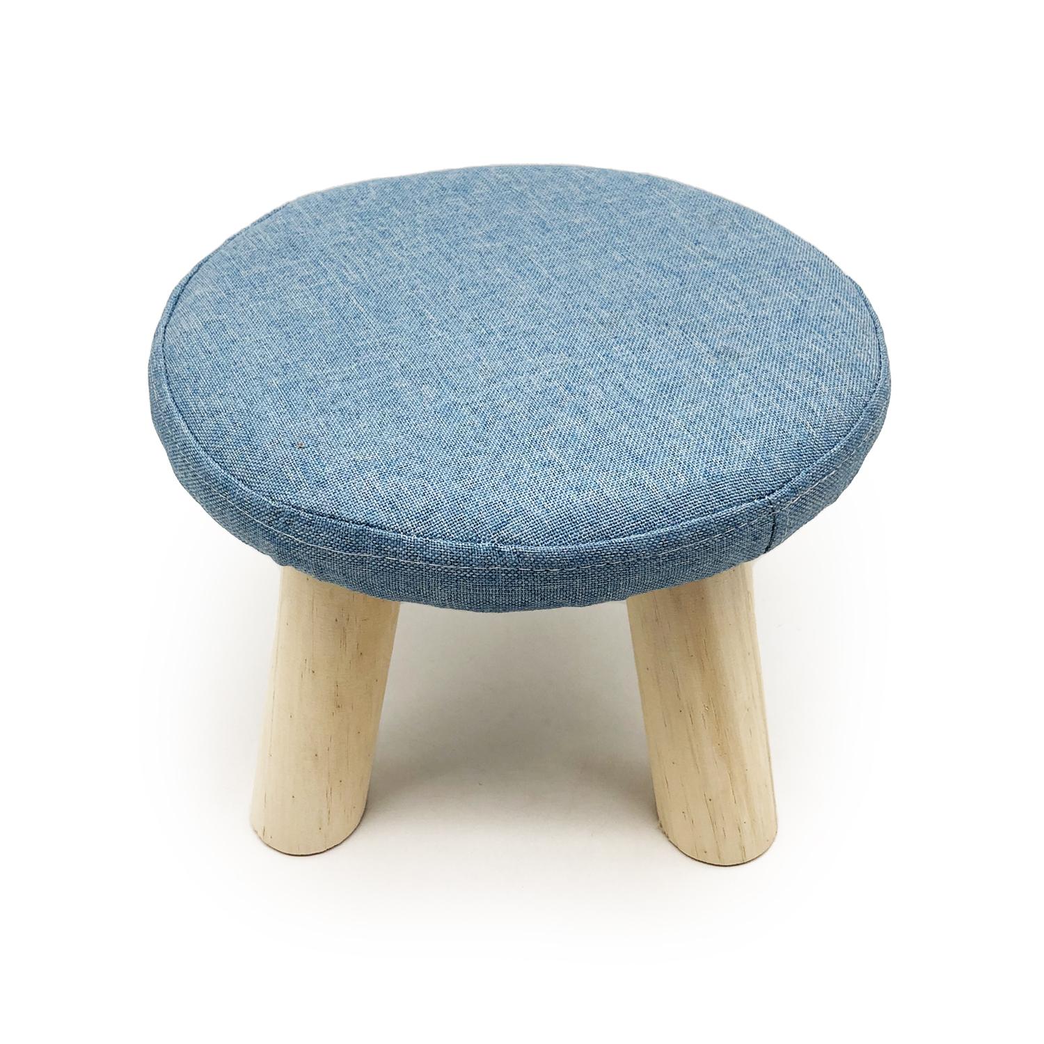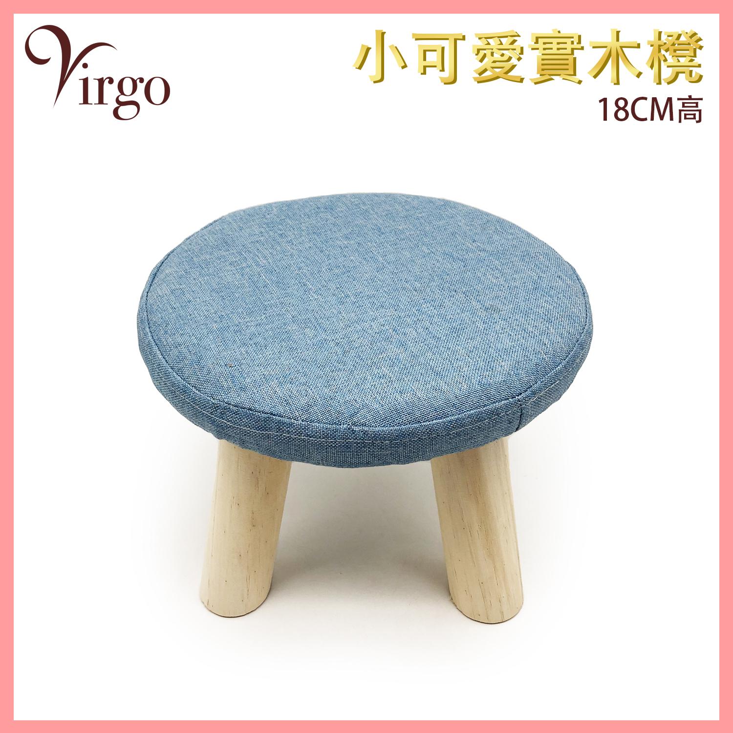 矮腳純藍色精緻布藝實木小凳子約18CM高 家居趣緻換鞋矮櫈 毛絨布套穿鞋小板凳 得意溫馨實木櫈 V-CHAIR-18CM-BLUE