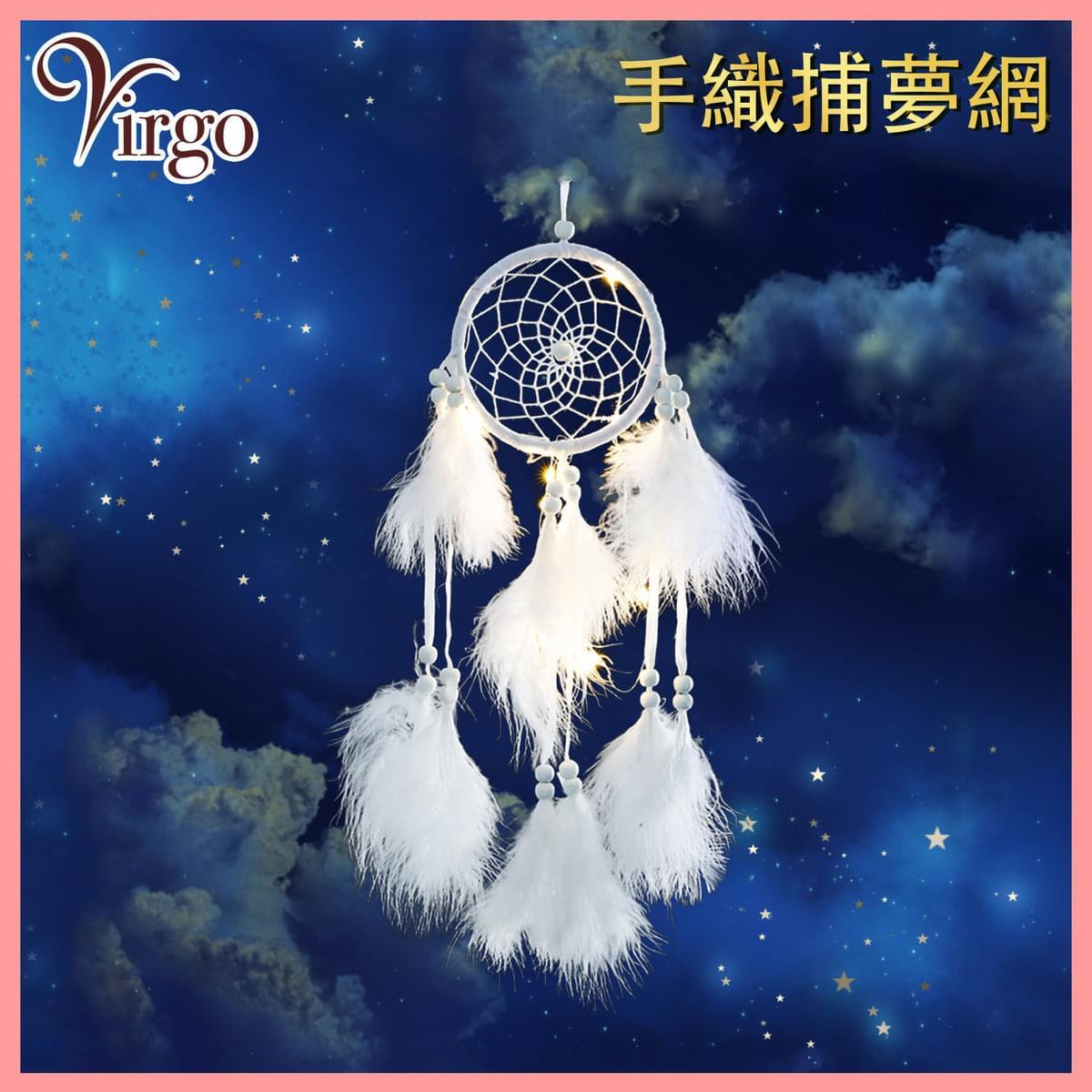 名稱: 白色單圈手織捕夢網 (V-DREAM-CATCHER-01) 顏色 : 白色圈 + 小圓球 呎吋 : 直徑11CM / 總長 50cm 特點 : --- 採用天宮然純棉線 --- 物料防靜電、環保 --- 印第安織花手法,充滿美感 --- 備有LED燈款供選擇 --- 羽毛經過熱薰處理, 備註 : 純手工製品,實物和圖片有少許差異屬正常