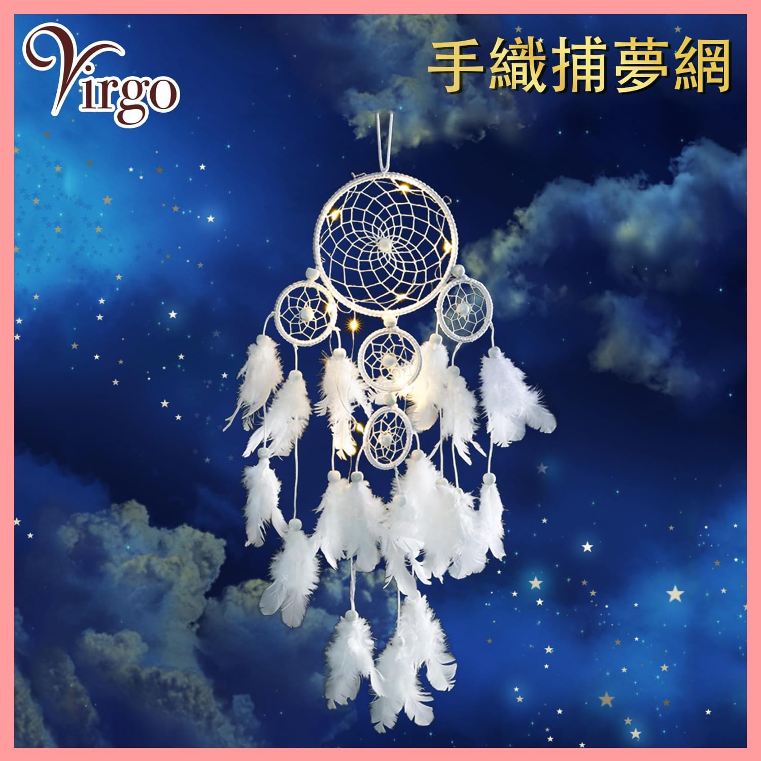 | 名稱: 白色五圈手織捕夢網 (V-DREAM-CATCHER-07) 顏色 : 1個大白色圈 + 4個小白色圈+ 白色小圓球 呎吋 : 直徑11CM / 總長 59cm 特點 : --- 採用天然純棉線 --- 物料防靜電、環保 --- 印第安織花手法,充滿美感 --- 備有LED燈款供選擇 --- 羽 |