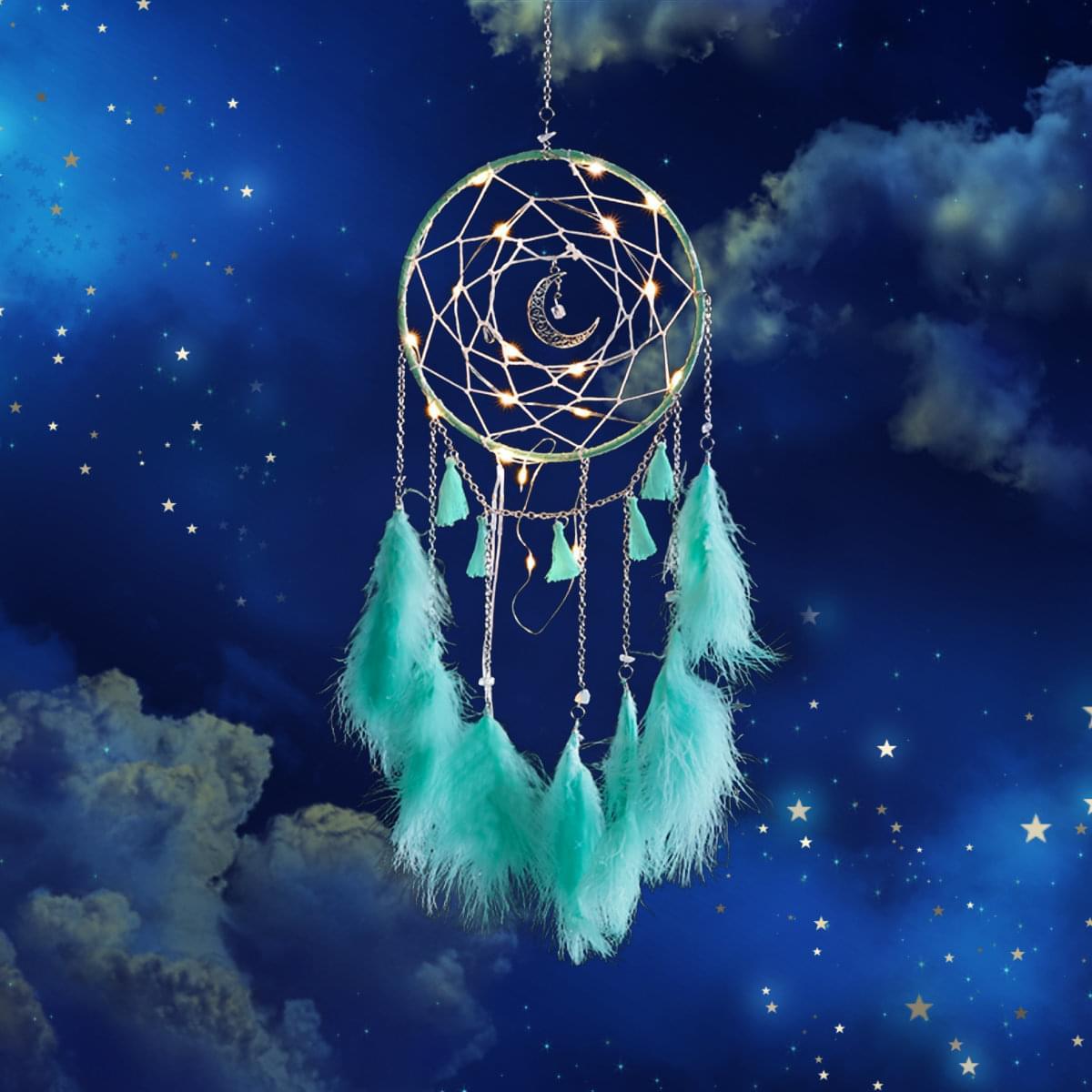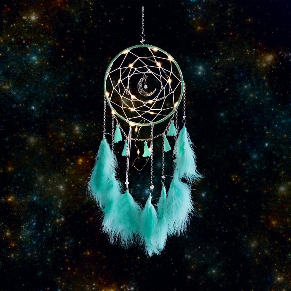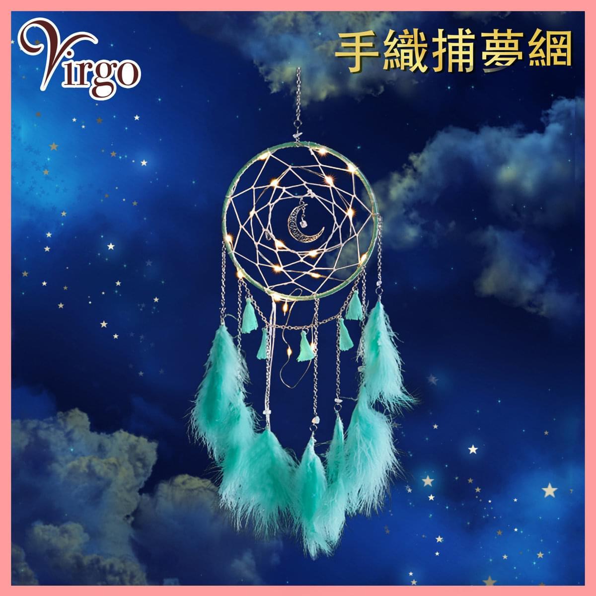名稱: 綠色圈 + 月亮掛扣手織捕夢網 (V-DREAM-CATCHER-11) 顏色 : 1個大綠色圈 + 1個月亮掛扣 呎吋 : 直徑16CM / 總長 54cm 特點 : --- 採用天然純棉線 --- 物料防靜電、環保 --- 印第安織花手法,充滿美感 --- 備有LED燈款供選擇 --- 羽毛經過熱薰處理, 備註 : 純手工製品,實物和圖片有少許差異屬正常