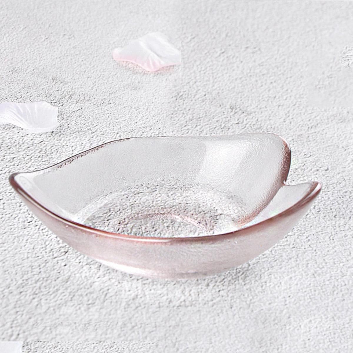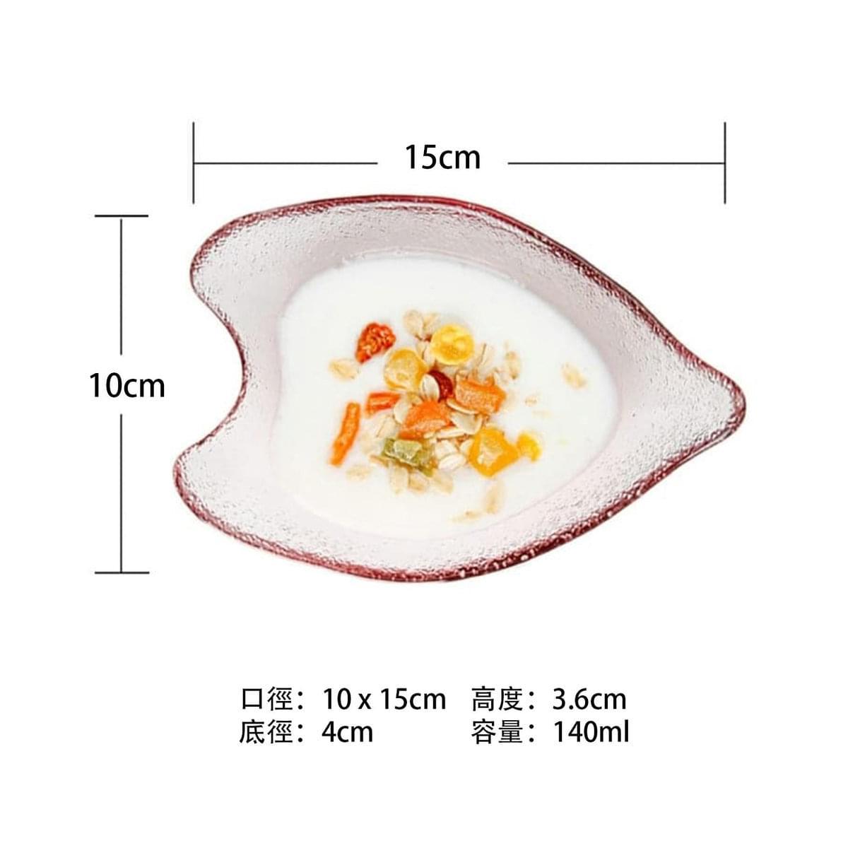 餐碟是桌上十分重要的點綴,浪漫粉紫透明碟,為您增添氣氛。沒有任何人工顏料,安全可靠。 名稱 : 樹葉形粉紫透明玻璃碟 呎吋 : 碟口 15x10cm / 高3.6cm 容量 : 140ml 用途 : 可放固體或液體食物 醬油、零食、水果