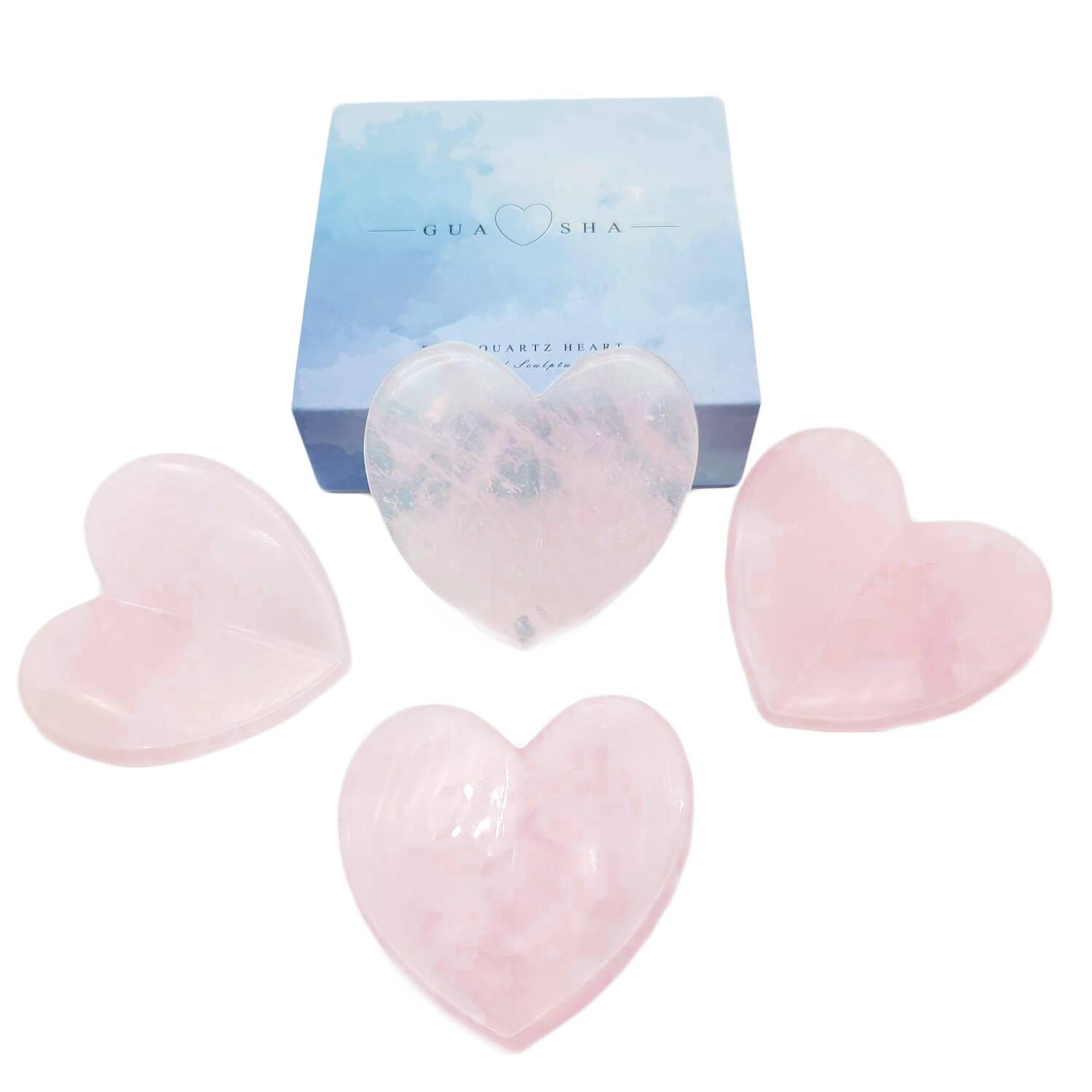 玫瑰刮痧水晶心型石經過特別設計,可通過刺激血液循環,同時消除粉刺,提拉和修緊臉部來增強自然美。玫瑰水晶是一種美化和修復的寶石。它有助於緩解壓力和焦慮,提升自我形象,增加自信。