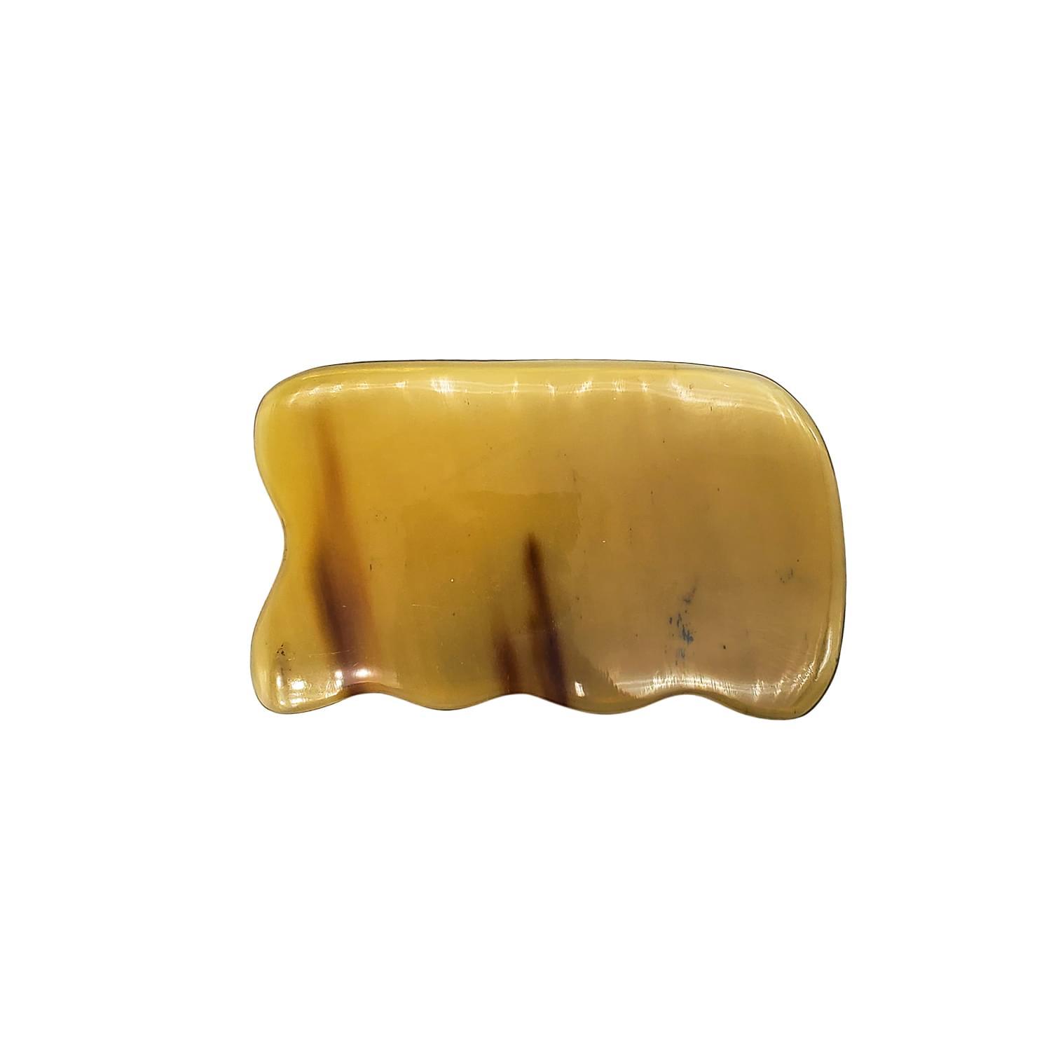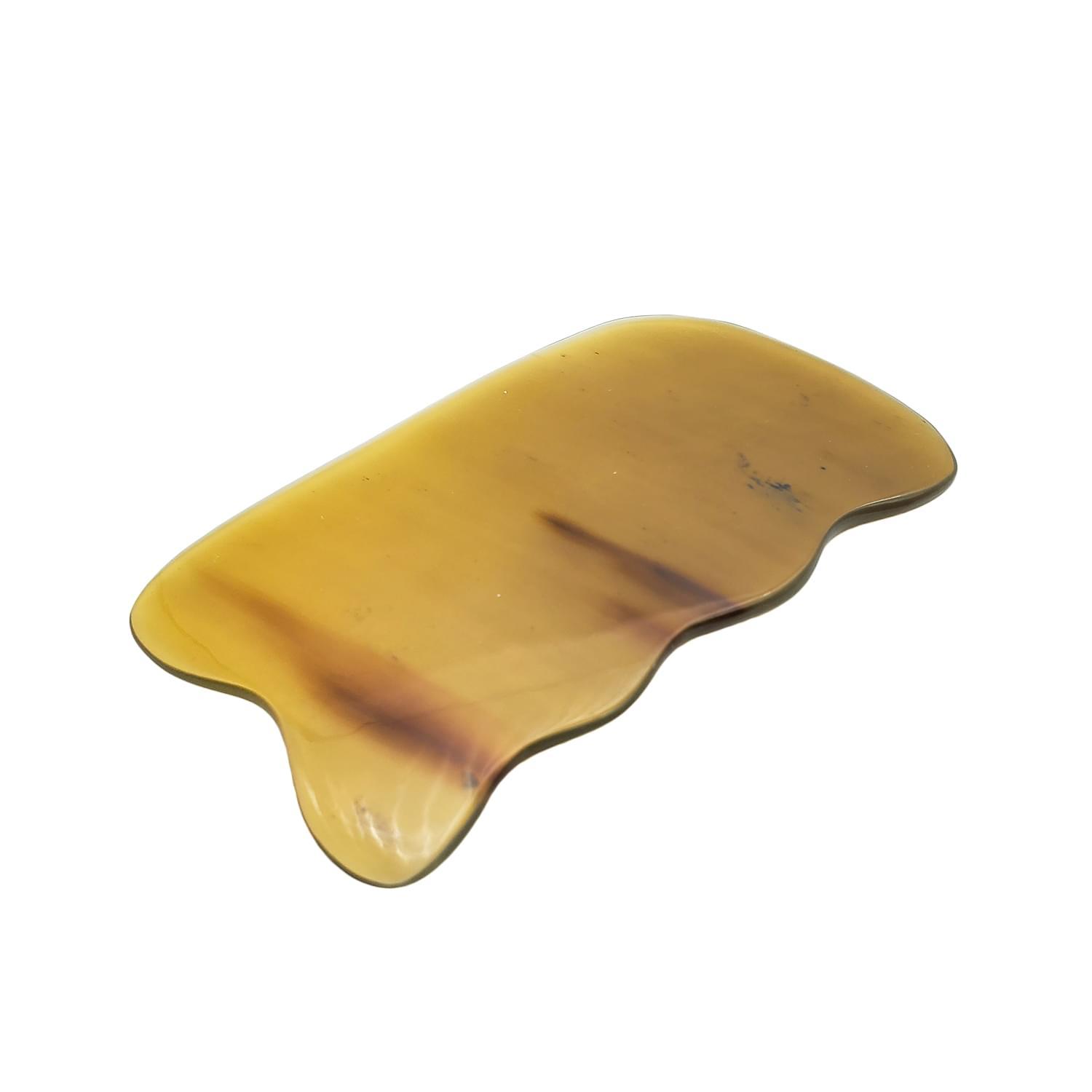 水牛角製成的刮痧板,表面紋理清晰,本身已有中醫學上的藥用價值;其板身豐厚,側邊平滑,提拉的同時能均勻倒入精華油及護膚品,有助你更輕易塑造緊緻V臉。
