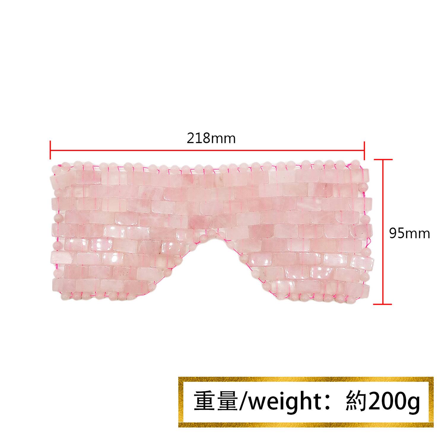 粉晶面罩、粉晶眼罩,全天然純手工整合而成,集天然與矜貴,美容與靈氣於一身。粉晶美容的功效自古已有,傳說埃妖后和埃及人早就以水晶保持肌膚年輕、亮澤。天然水晶,是世界上最純淨的寶石,它經過八千萬年以上深藏地底,靜聽天地之呢喃,親睹滄海桑田的變幻,擁自然界之靈氣,藏世間萬物之涵養,自古就以其冰心玉潔、靈氣逼人的特性被世人所喜愛。這款粉晶玉石面罩、晶石眼簾,採用天然粉晶玉石,手工穿線而成。每個面罩包含四百多顆蘊藏天地萬物靈氣的天然粉晶,圍邊更配上打磨圓滑的粉晶珠鏈,造型矜貴。粉晶,又稱薔薇水晶、芙蓉晶、芙蓉石或玫瑰水晶,石英石的一種,是著名的愛情寶石。現在你只消舒適地平躺身軀,敷上粉晶玉石面罩,便可把四百多顆純淨的寶石敷在面上。自然界之靈氣與運氣隨著冰涼的感覺,悠然導入你的肌膚。由於玉石有一定的重量,加上打磨平滑,每顆晶石的棱角都經細緻打磨,故貼面程度比一般面膜更勝一籌,讓你臉上每寸肌膚,都能均勻享受涼浸浸的快感。