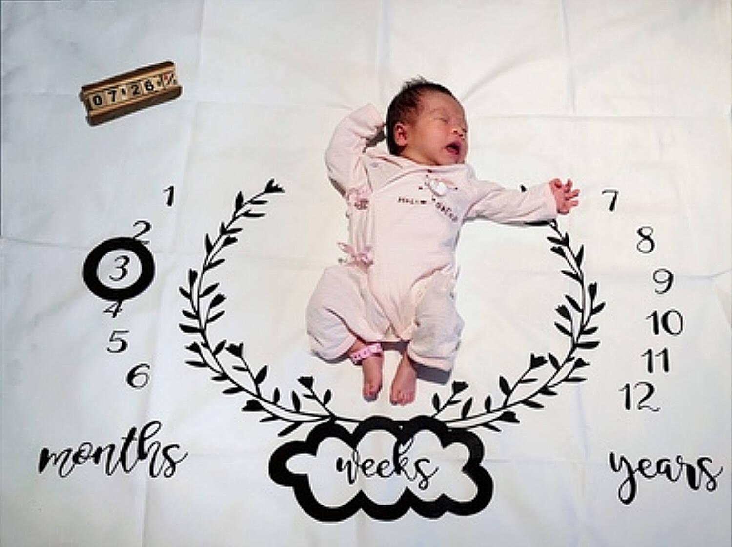 05號白布小麥款寶寶拍照背景圖案布 嬰兒滿月百日宴慶祝背景布 BB成長過程記錄背景攝影道具 新生兒拍照毯 量度高度拍攝布 影相佈景布 V-PHOTO-WH-05