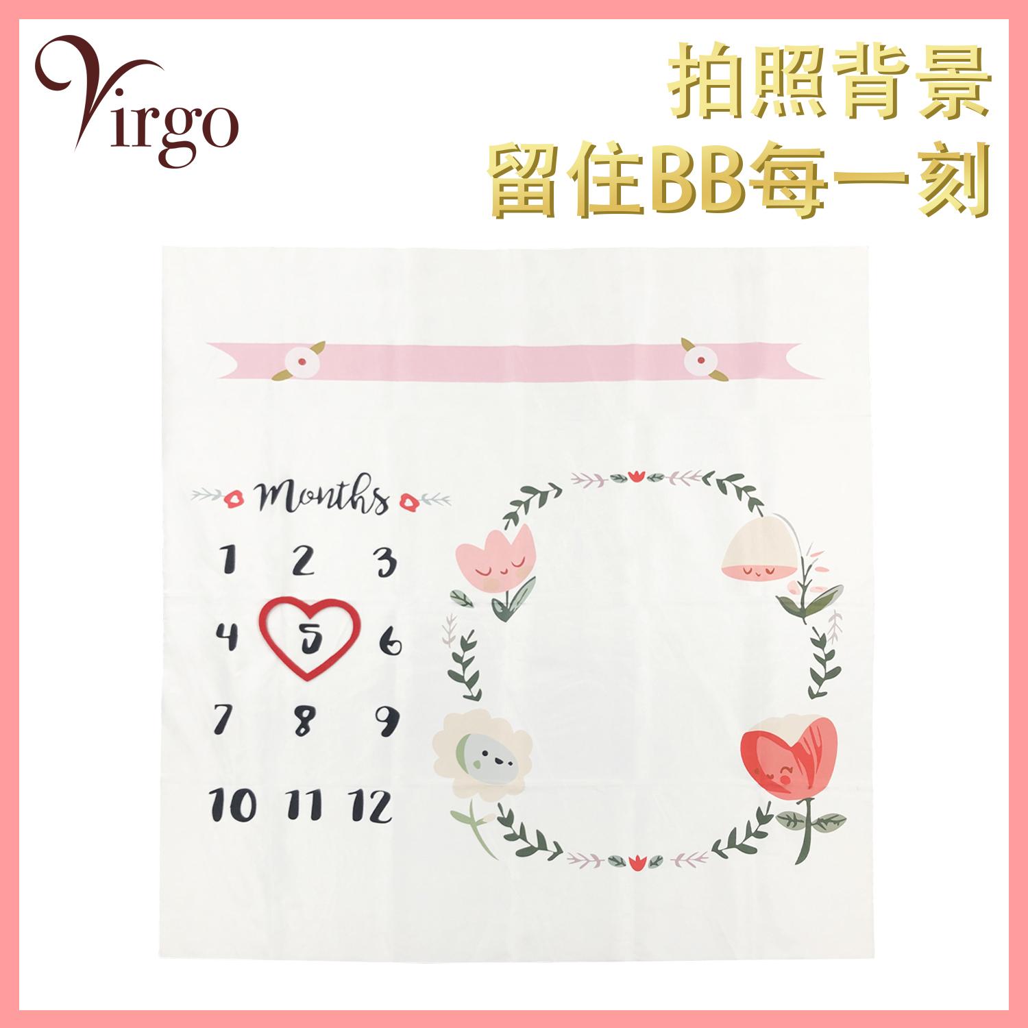 06號白布花花款寶寶拍照背景圖案布 嬰兒滿月百日宴慶祝背景布 BB成長過程記錄背景攝影道具 新生兒拍照毯 量度高度拍攝布 影相佈景布 V-PHOTO-WH-06