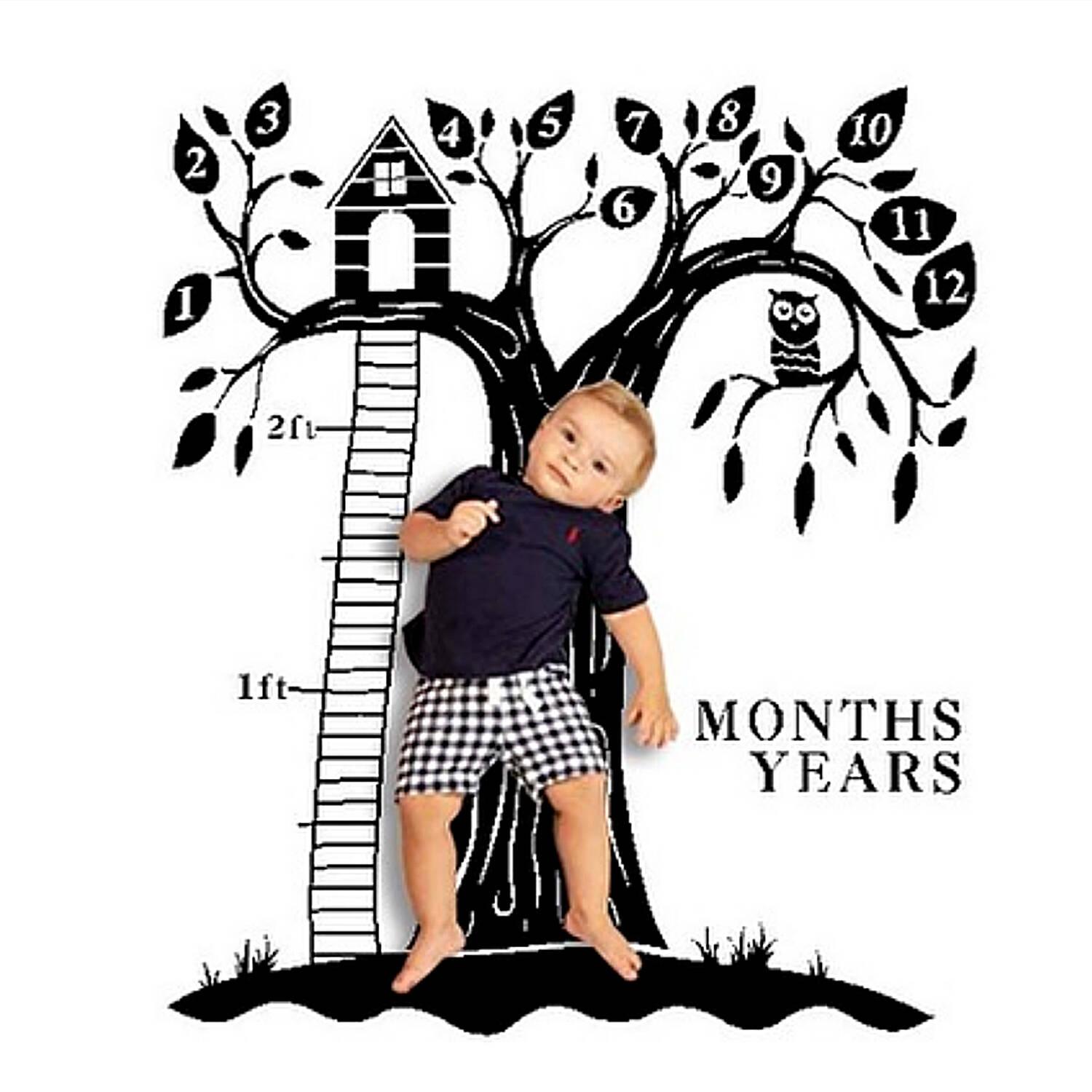 09號白布大樹量高度款寶寶拍照背景圖案布 嬰兒滿月百日宴慶祝背景布 BB成長過程記錄背景攝影道具 新生兒拍照毯 量度高度拍攝布 影相佈景布 V-PHOTO-WH-09