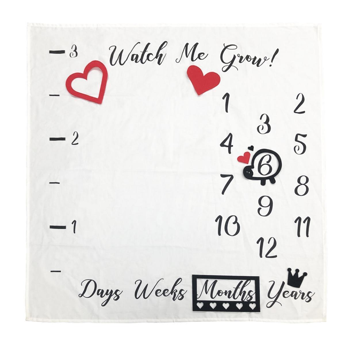 10號白布看著我成長款寶寶拍照背景圖案布 嬰兒滿月百日宴慶祝背景布 BB成長過程記錄背景攝影道具 新生兒拍照毯 量度高度拍攝布 影相佈景布 V-PHOTO-WH-10