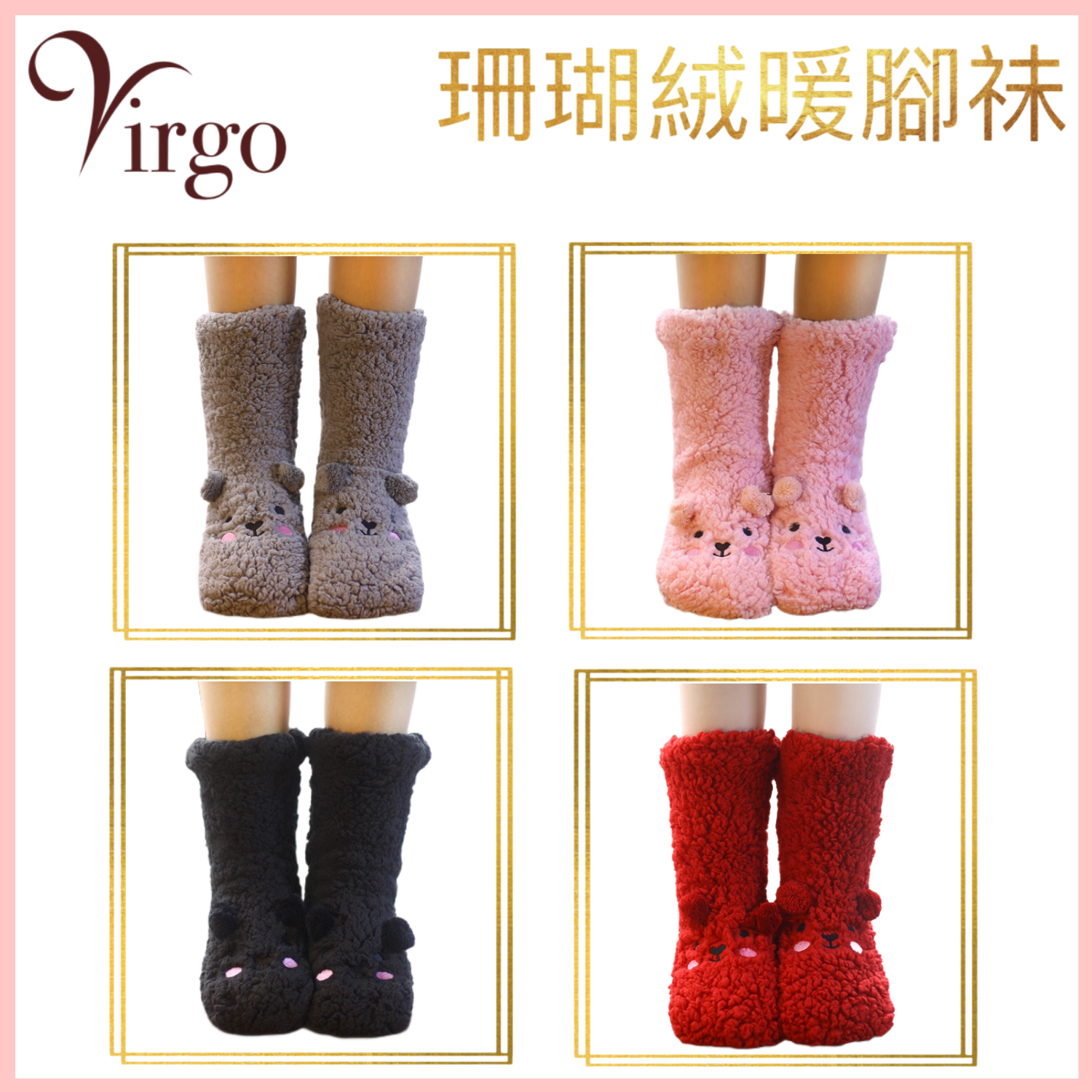 名稱 : 灰色珊瑚絨袜(V-SOCK-THICK-RED) 呎碼 : 彈性 36-42碼 包裝 : 每包一對兩隻 材質 : 加厚珊瑚絨 特點: --- 內外一樣為保暖珊瑚絨 --- 底部有防滑膠點 --- 彈性呎碼,適合大部分女士 --- 質料舒適,一摸愛上