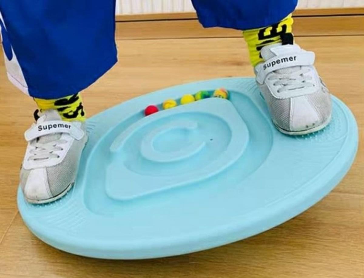 名稱 : 平衡板 (附送5個硬小球) 呎吋 : 長46cm x 閣36cm 材質 : 環保PE膠 特點: --- 親子活動、消磨時間 --- 可用腳踏或用手去控制小球 --- 加強專注能力 --- 學懂排解障礙 --- 平衡板底部為圓球,可前後左右擺動 --- 腳踏防滑設計,安全穩固 --- 人體力學支撐,左搖右擺都不翻側 ---