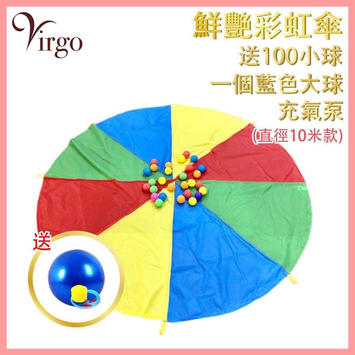 鮮艷彩虹傘玩具(送100個小球 + 一個藍色40CM大球 + 充氣泵)(V-TOY-RAINBOW-10M)