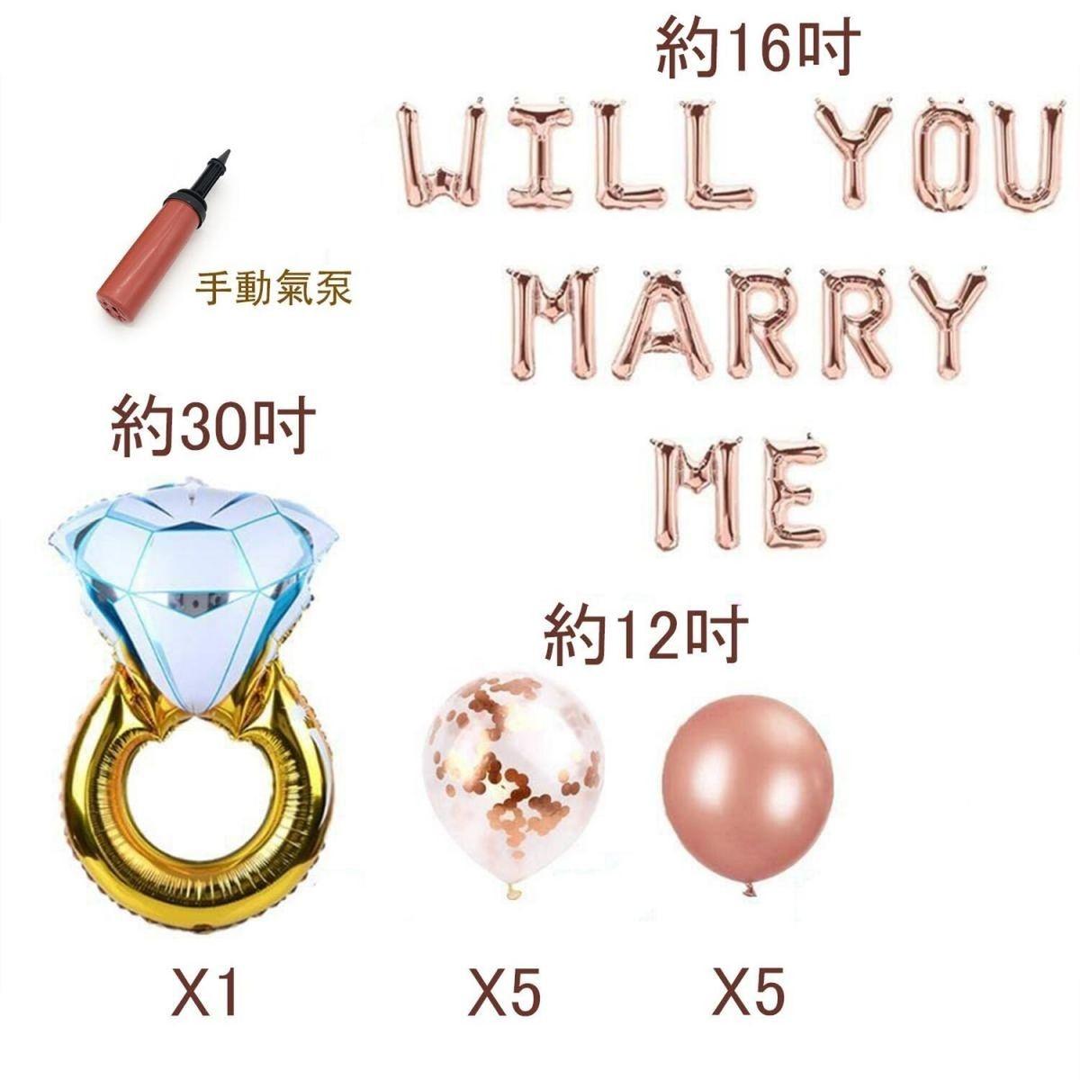 名稱 : 玫瑰金色特大介指WILL YOU MARRY ME字型鋁膜氣球套裝 (VBL-LOVE-07)