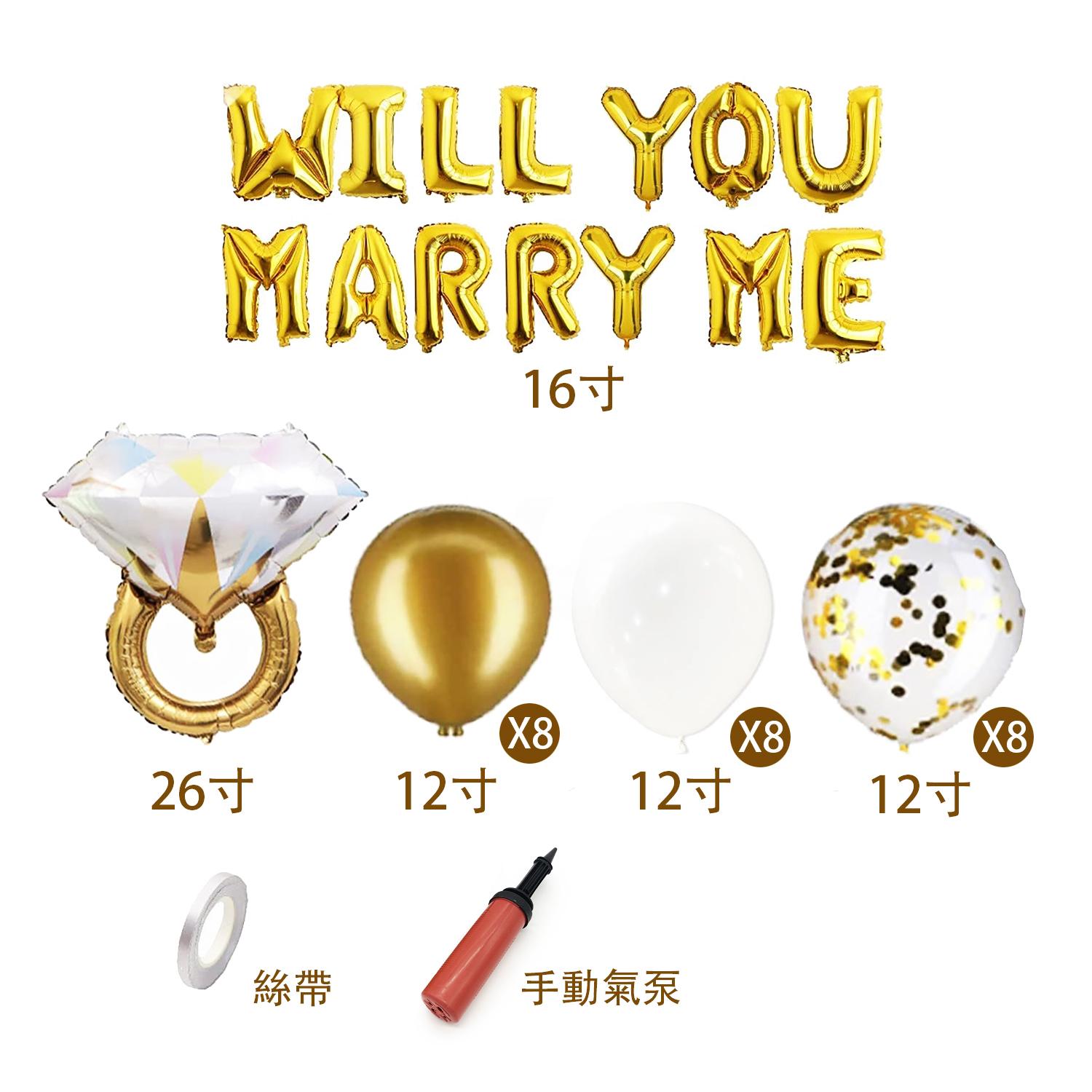名稱 : WILL YOU MARRY ME派對氣球套裝(VBL-LOVE-MM-GD)