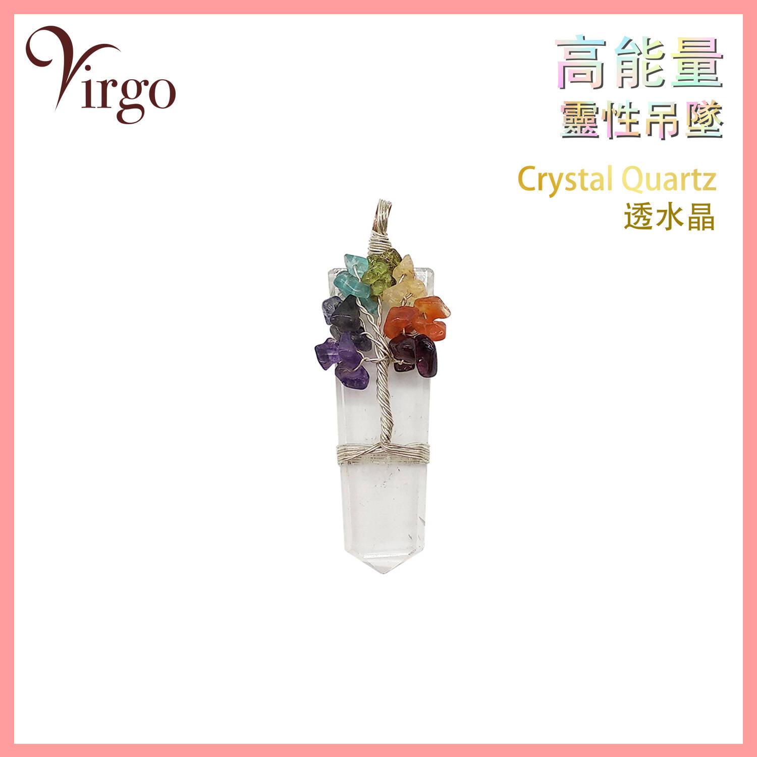 透水晶印度鑲花水晶吊墜,純手工精製水晶靈擺/項鍊吊墜/石英吊墜/點吊墜占卜護身吊墜裝飾靈性用品舒緩工作壓力減輕勞累招財轉運闢邪鎮宅長扁條形鑲花 (VCP-F-CRYSTAL-QUARTZ)