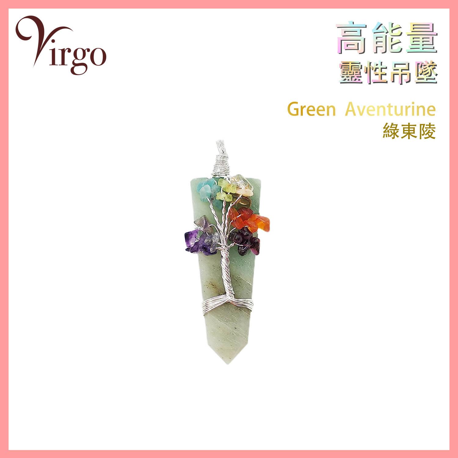 綠東陵印度鑲花水晶吊墜,純手工精製水晶靈擺/項鍊吊墜/石英吊墜/點吊墜占卜護身吊墜裝飾靈性用品舒緩工作壓力減輕勞累招財轉運闢邪鎮宅長扁條形鑲花 (VCP-F-GREEN-AVENTURINE)
