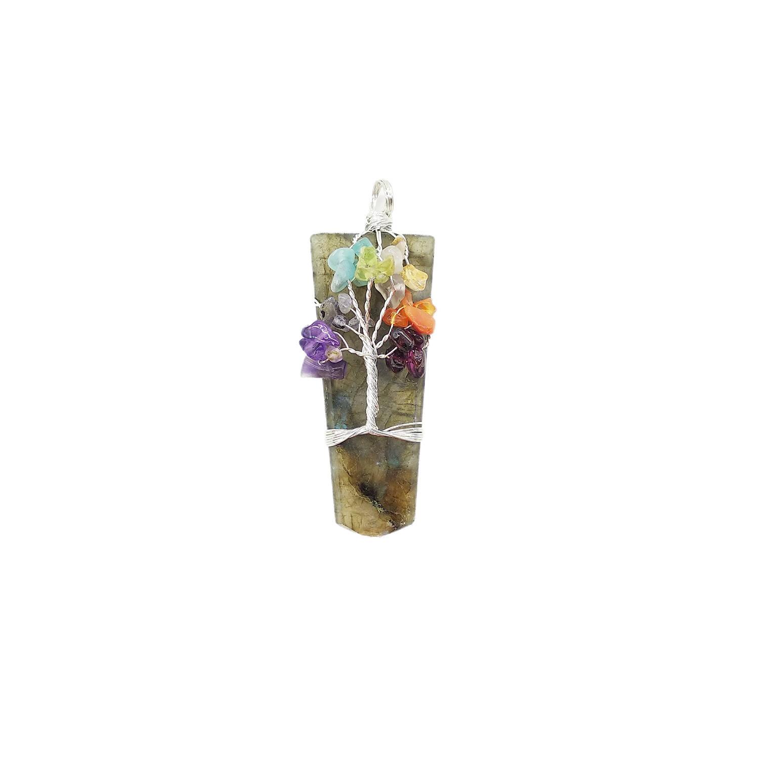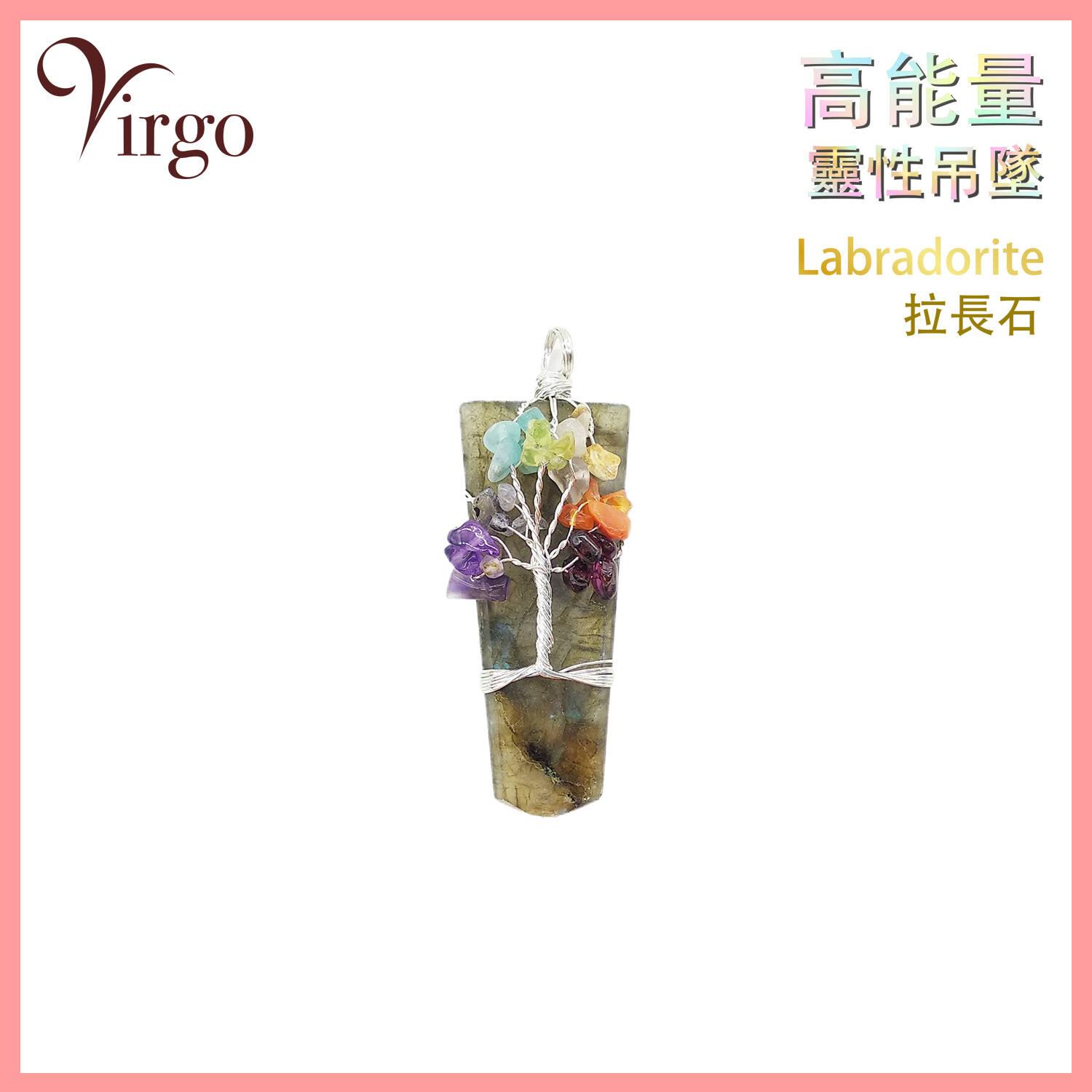 拉長石印度鑲花水晶吊墜,純手工精製水晶靈擺/項鍊吊墜/石英吊墜/點吊墜占卜護身吊墜裝飾靈性用品舒緩工作壓力減輕勞累招財轉運闢邪鎮宅長扁條形鑲花 (VCP-F-LABRADORITE)