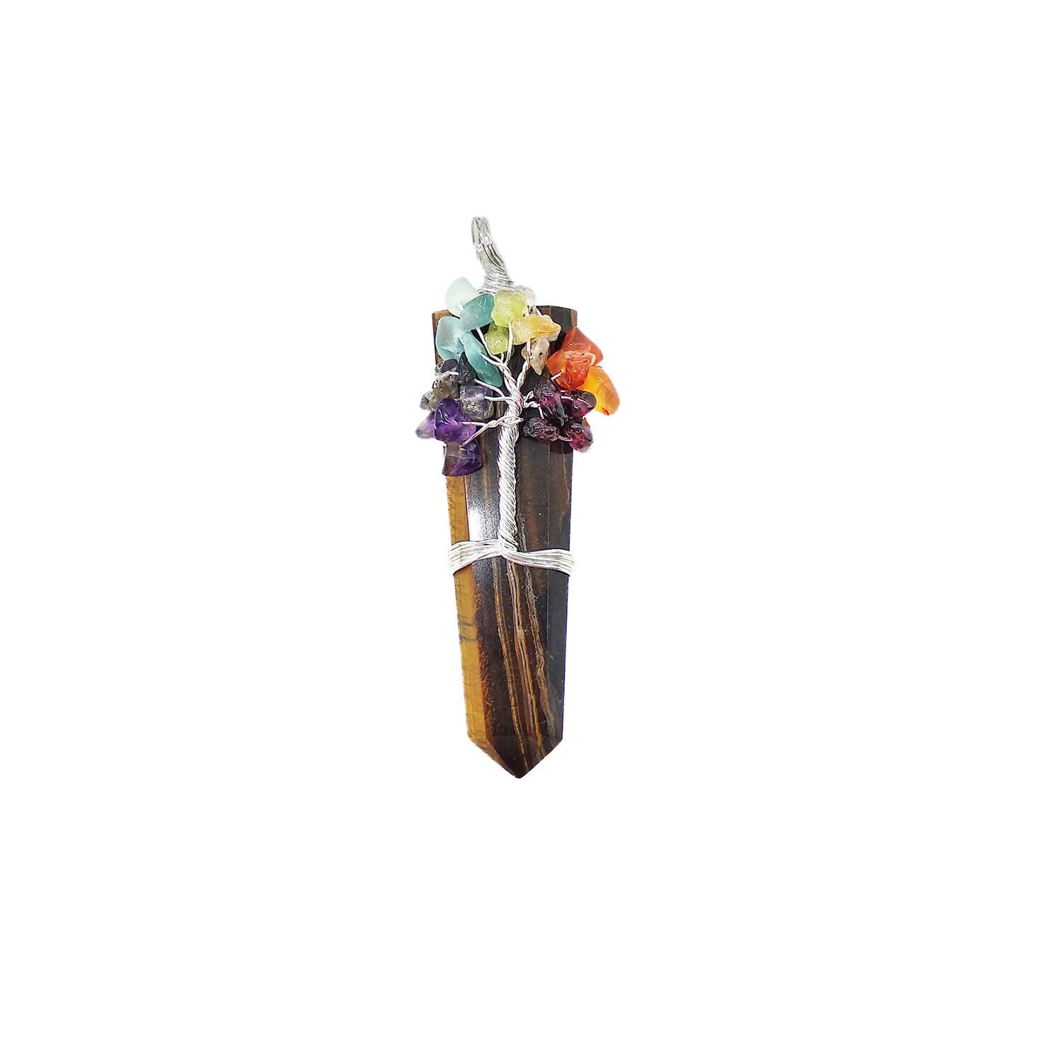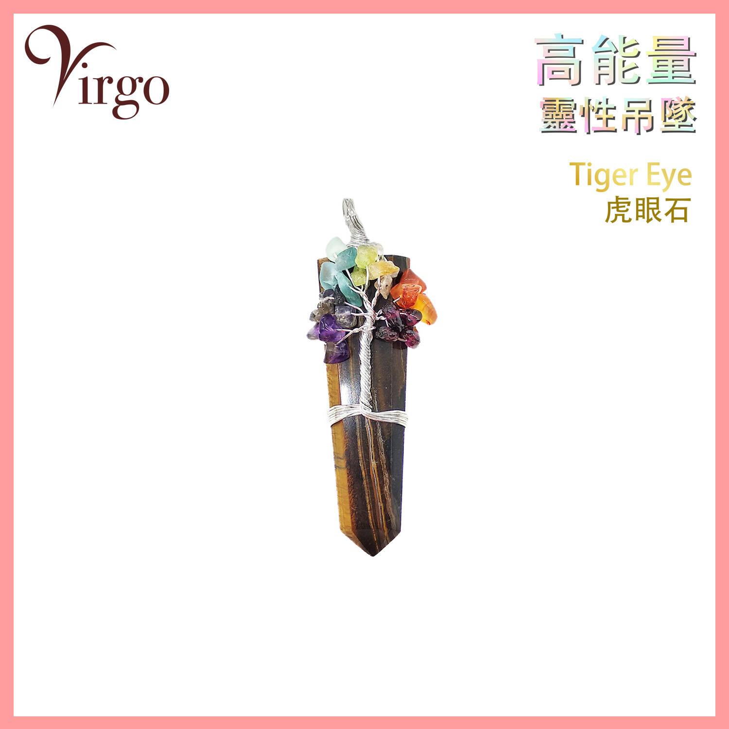 虎眼石印度鑲花水晶吊墜,純手工精製水晶靈擺/項鍊吊墜/石英吊墜/點吊墜占卜護身吊墜裝飾靈性用品舒緩工作壓力減輕勞累招財轉運闢邪鎮宅長扁條形鑲花 (VCP-F-TIGER-EYE)