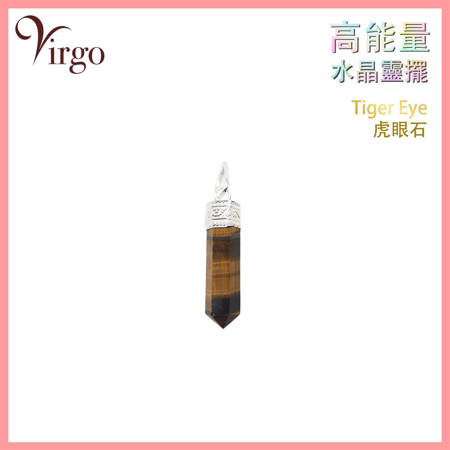 虎眼石印度U形水晶靈擺吊墜,純手工精製水晶靈擺吊墜/項鍊吊墜/石英吊墜/點吊墜占卜護身吊墜裝飾靈性用品舒緩工作壓力減輕勞累招財轉運闢邪鎮宅六方柱倒六角形尖柱 (VCP-U-TIGER-EYE)