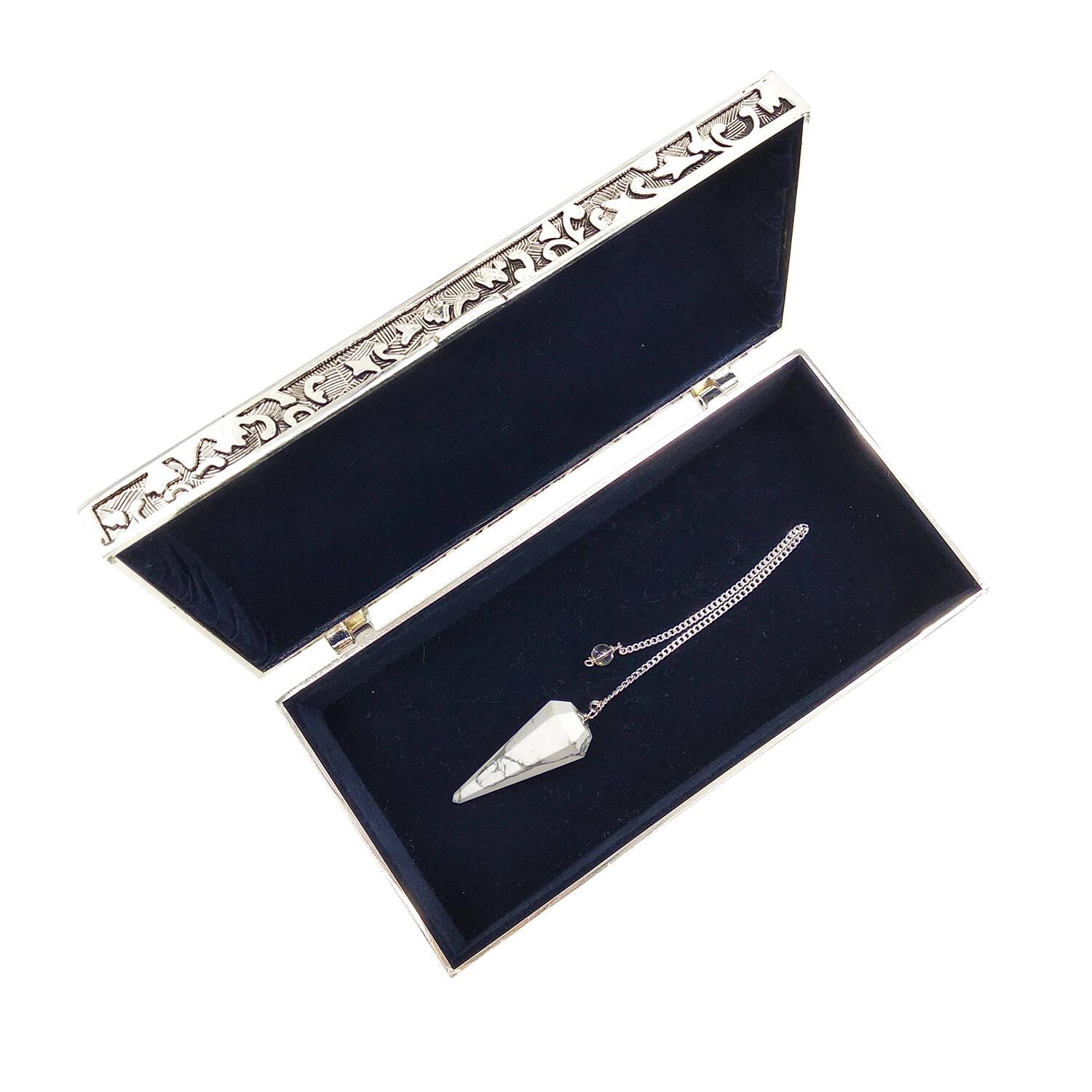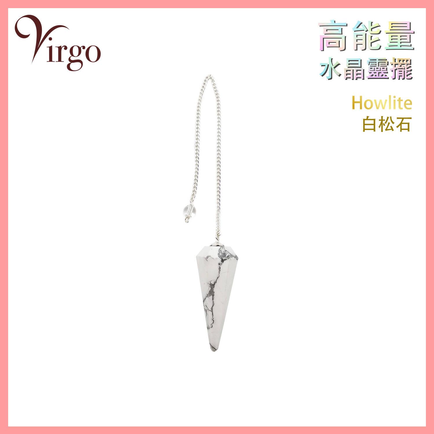 白松石印度V形水晶靈擺吊墜,純手工精製水晶靈擺吊墜/項鍊吊墜/石英吊墜/點吊墜占卜護身吊墜裝飾靈性用品舒緩工作壓力減輕勞累招財轉運闢邪鎮宅六方錐尖頂倒三角形 (VCP-V-HOWLITE)