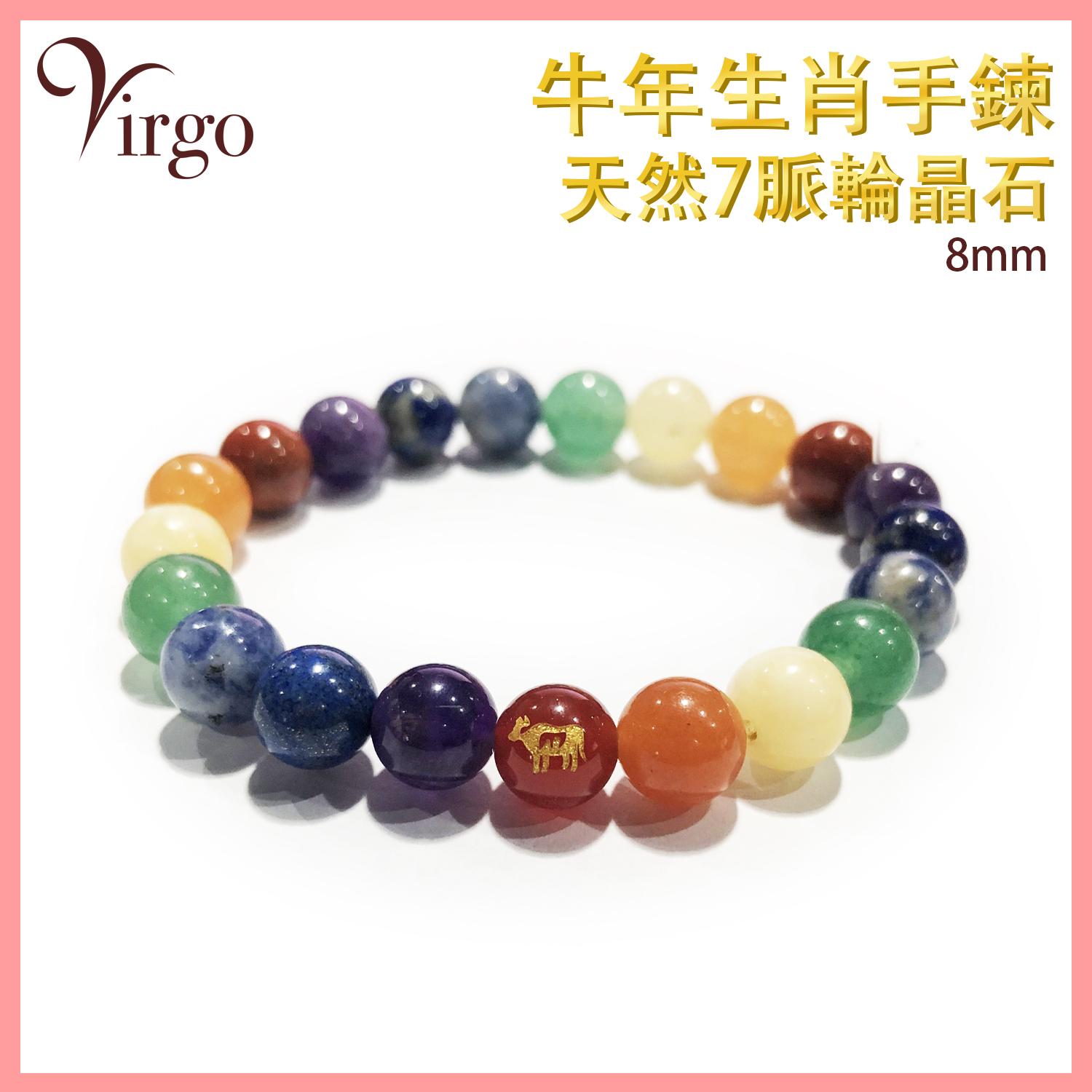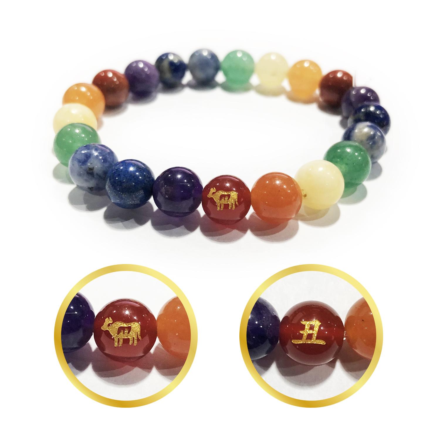 名稱 : 牛年生肖配7脈輪晶石手鏈(VFS-BRACELET-8MM-7C02)