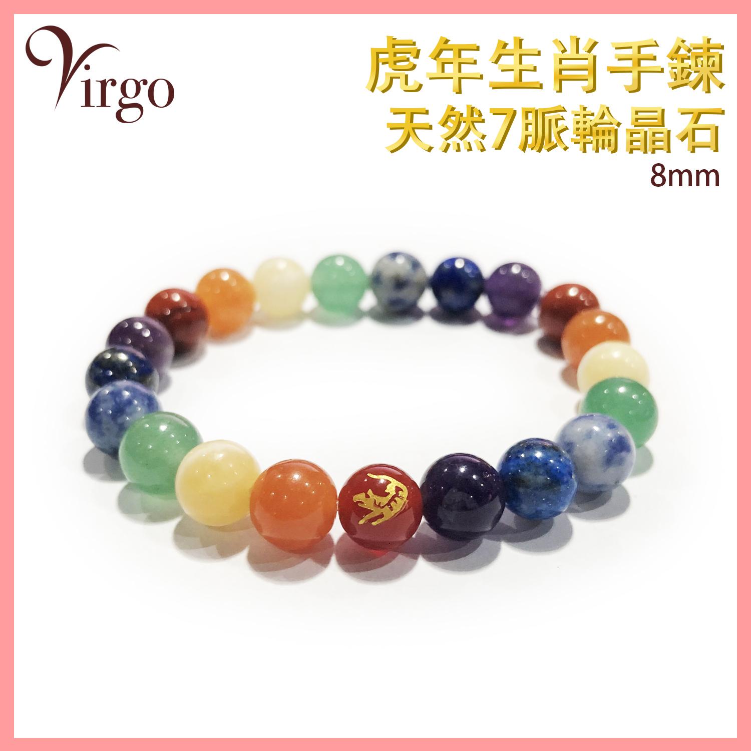 名稱 : 虎年生肖配7脈輪晶石手鏈(VFS-BRACELET-8MM-7C03)