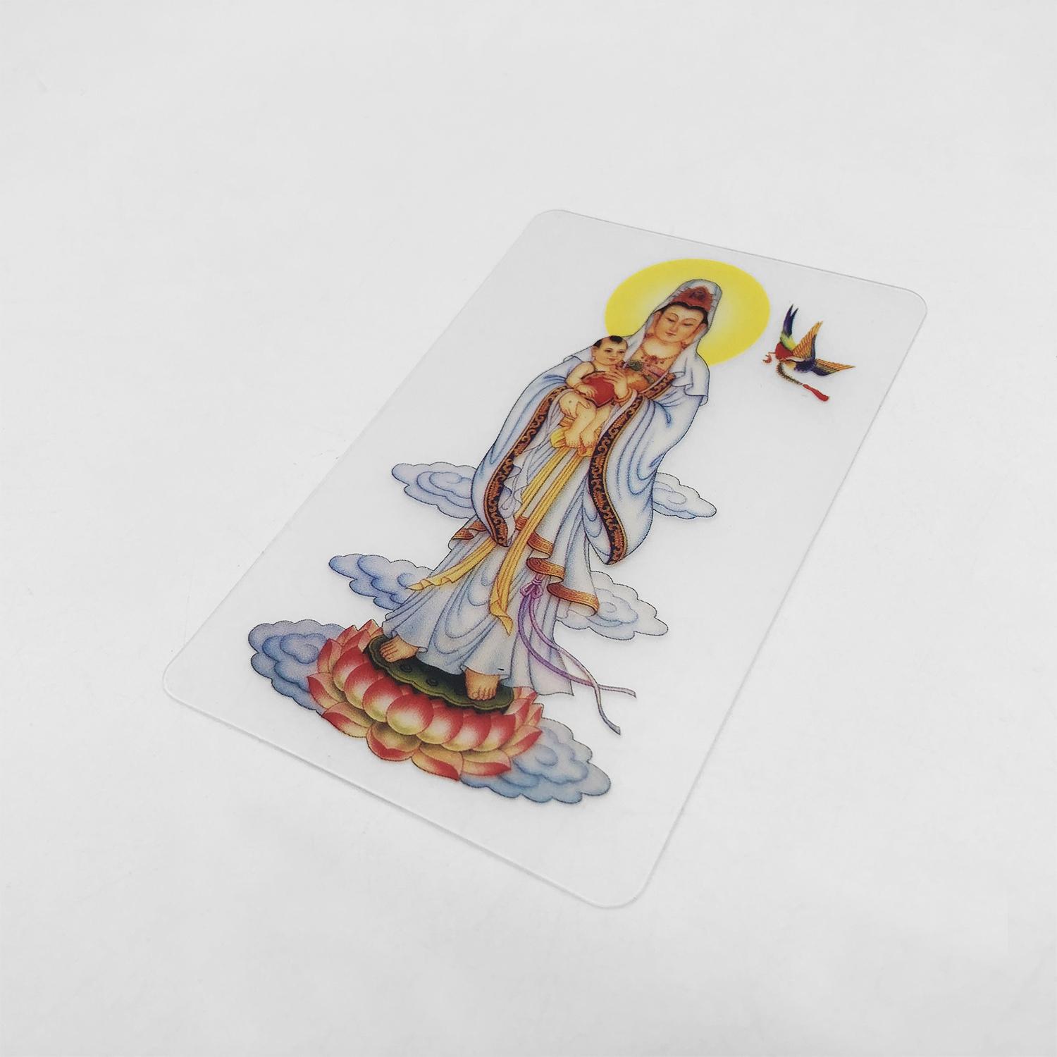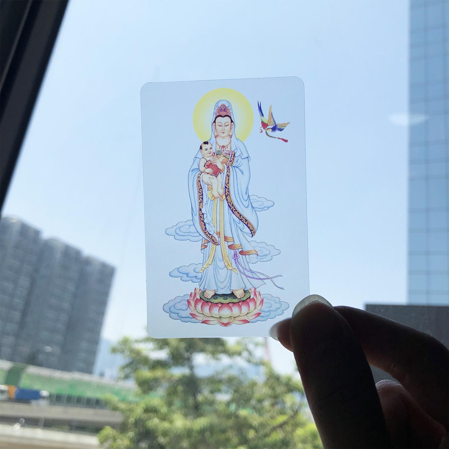 名稱 : 送子觀音(保母子平安)(VFS-PRAJNA-CARD-03)材質 : 透明磨沙呎吋 : 5.4 x 8.5CM特點 :--- 體積細小,可隨身攜帶--- 保平安、增佛緣