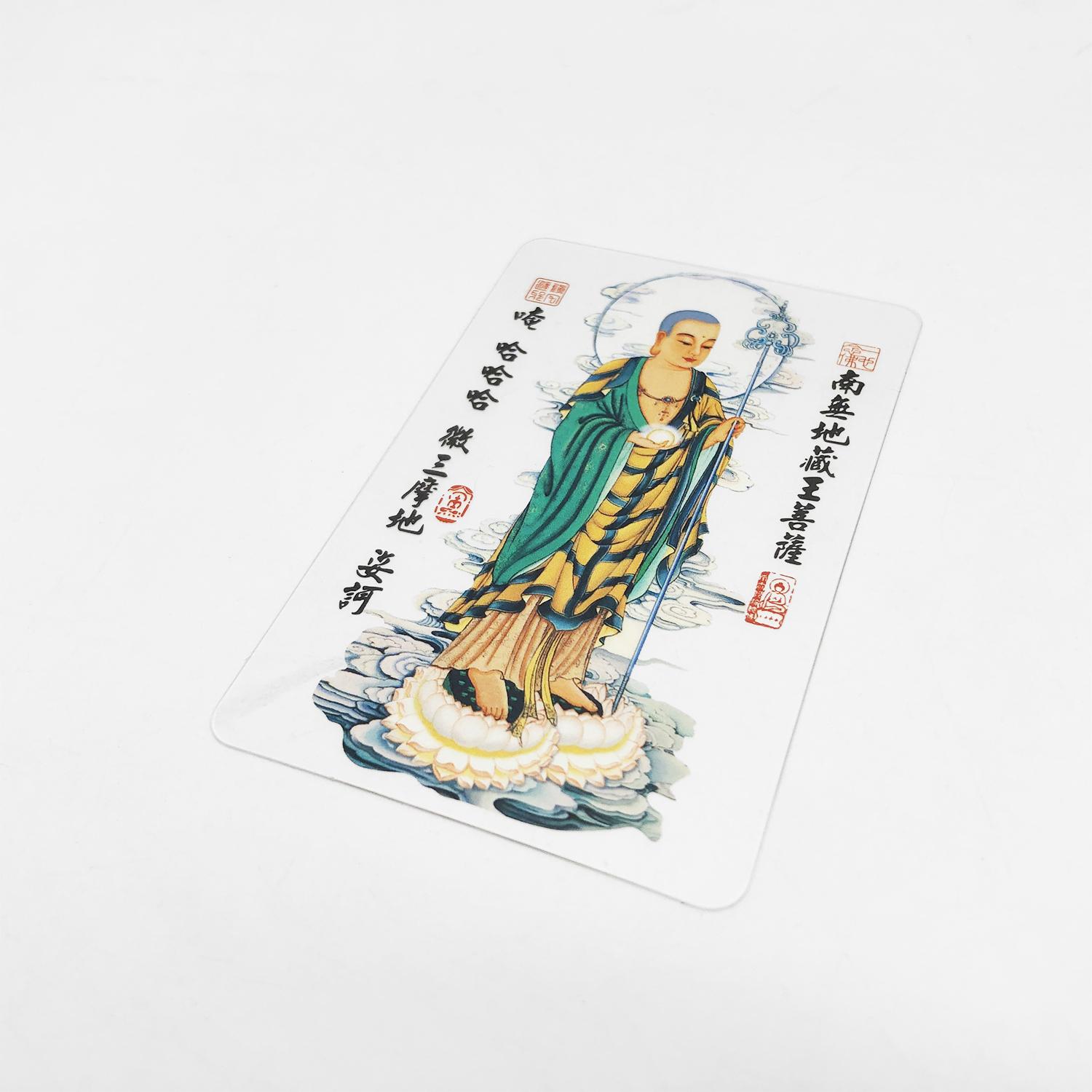 名稱 : 地藏王菩薩(VFS-PRAJNA-CARD-06)材質 : 透明磨沙呎吋 : 5.4 x 8.5CM特點 :--- 體積細小,可隨身攜帶--- 保平安、增佛緣