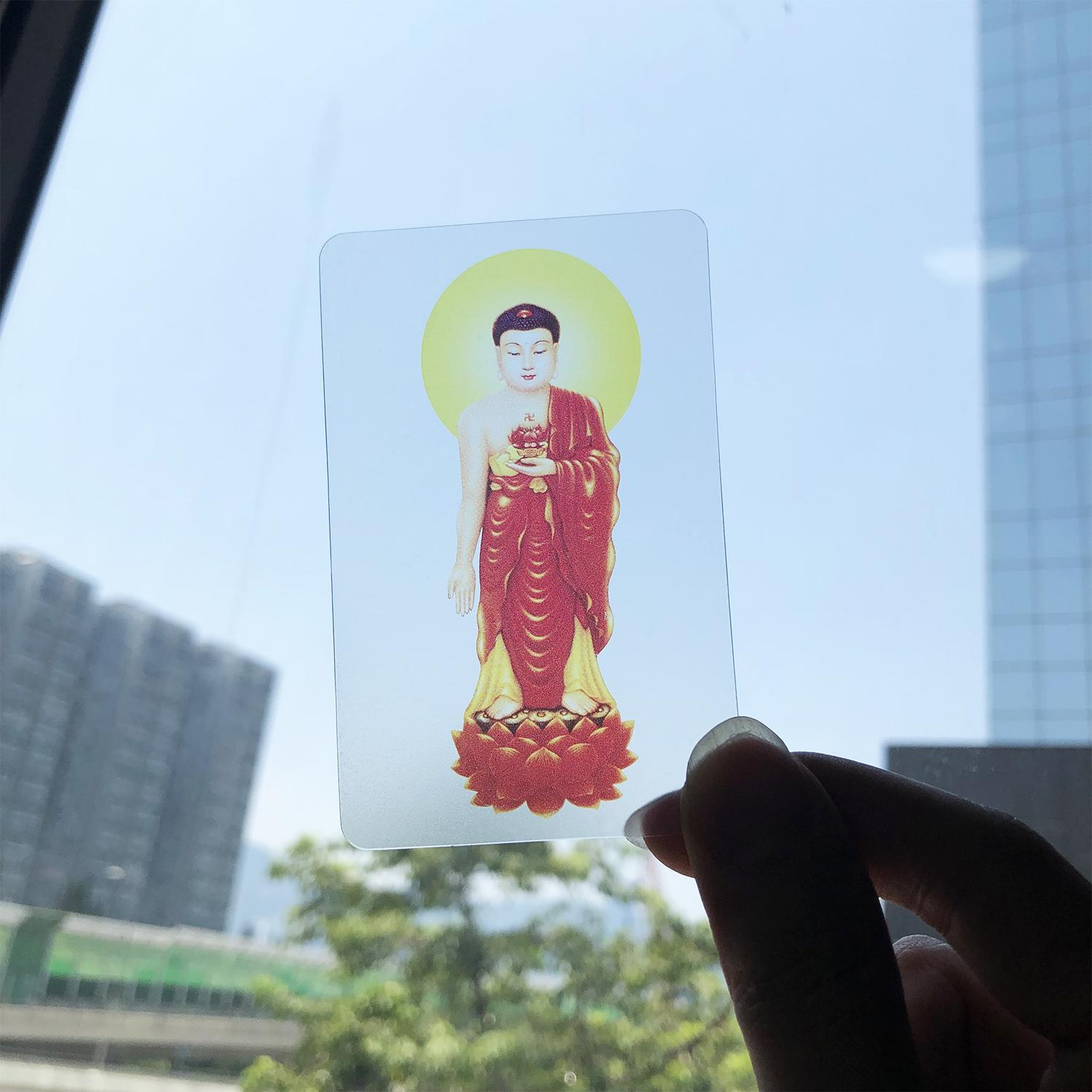 名稱 : 阿彌陀佛(VFS-PRAJNA-CARD-08)材質 : 透明磨沙呎吋 : 5.4 x 8.5CM特點 :--- 體積細小,可隨身攜帶--- 保平安、增佛緣